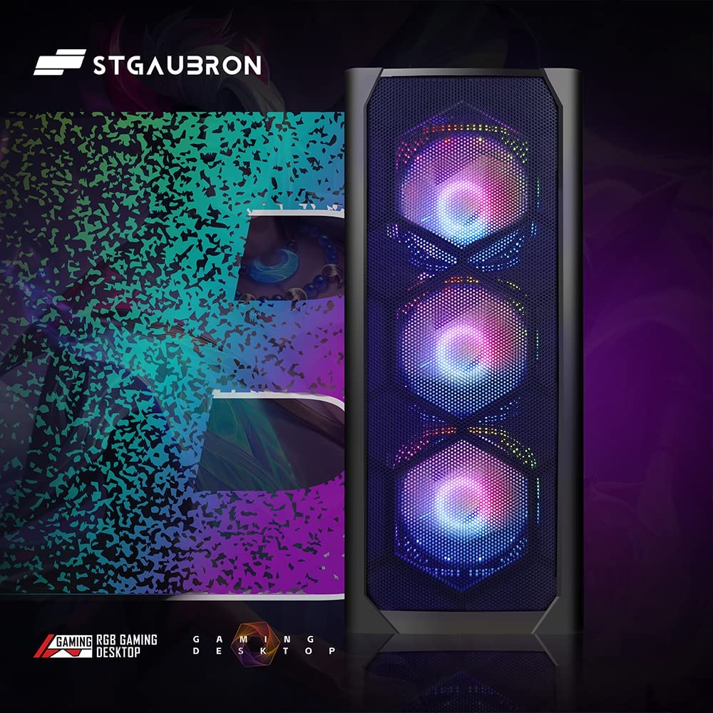 STGAubron Gaming Desktop PC Computer,Intel Core I7 3.4 GHz up to 3.9 GHz,16G RAM,512G SSD,Radeon RX 580 8G GDDR5,WiFi,Bluetooth 5.0,RGB Fanx6,RGB Keyboard&Mouse&Mouse Pad,RGB BT Sound Bar,Win10Pro64