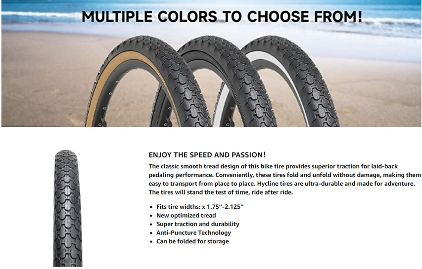 Hycline Bike Tire,24/26x2.125 Inch Folding Replacement Tire for Beach Cruiser Bicycle