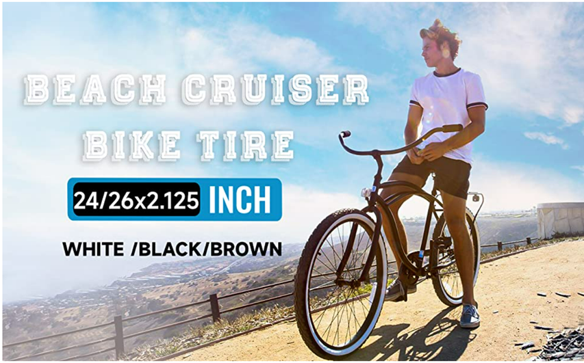 Hycline Bike Tire,24/26x2.125 Inch Folding Replacement Tire for Beach Cruiser Bicycle-White /Black/Brown