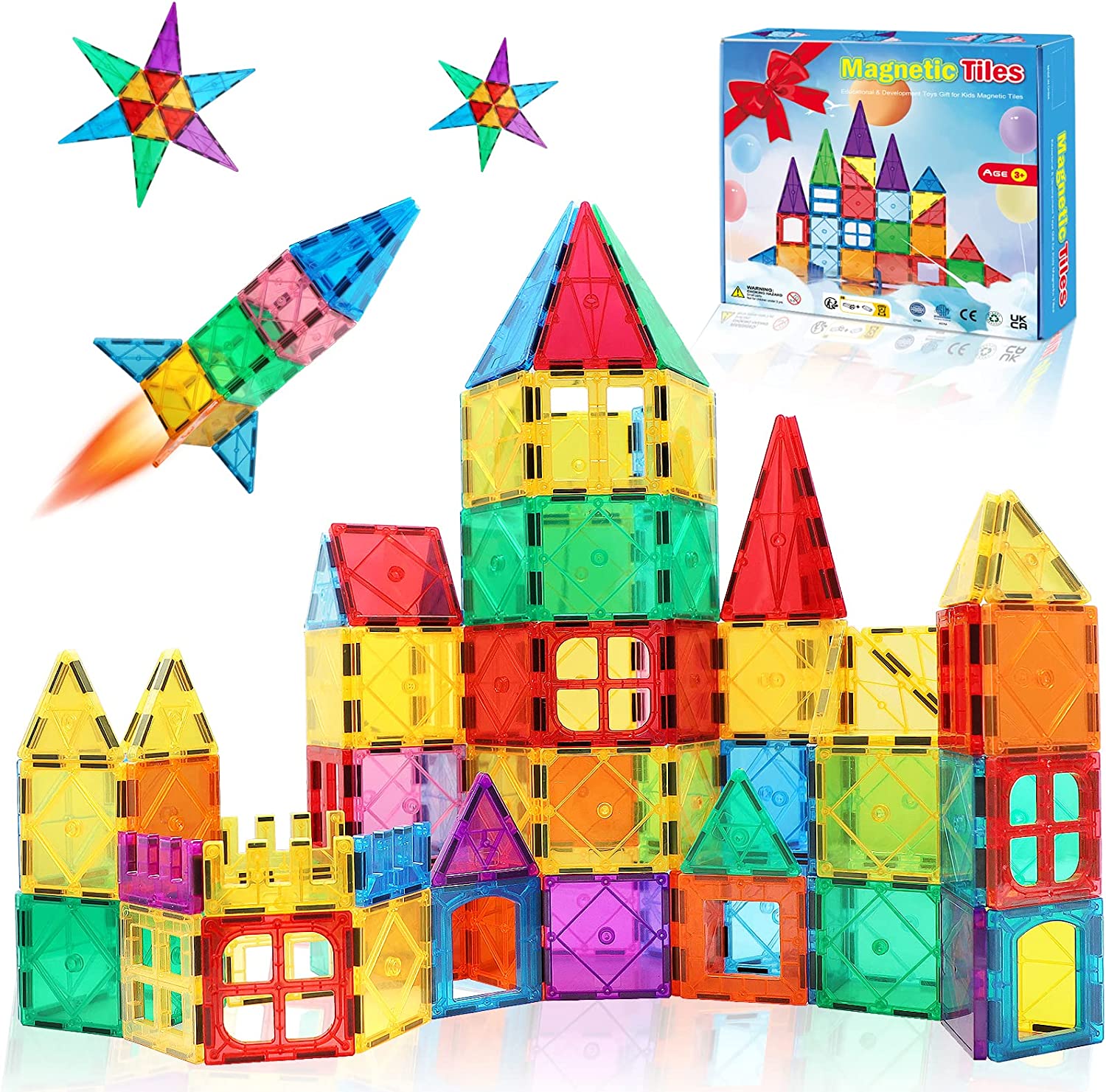 Magnetic Tiles Building Blocks for 3 4 5 6 7 8+ Years Old Boys Girls Colorful Magnet Stacking Toys Birthday Gift for Toddlers STEM Preschool Educational Construction Tiles Set for Kids Age 3-5
