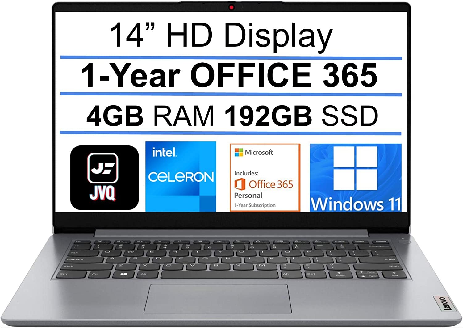 Lenovo Newest IdeaPad Laptop, 14.0" HD Display, Intel N4020, 4GB DDR4 RAM, Built-in 192G SSD(64G eMMC+128G PCIe SSD), 1-Year Office 365, Webcam, HDMI, WiFi 6, Bluetooth, Windows 11, Grey, JVQ MP