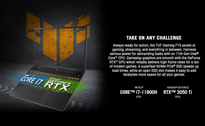 ASUS TUF Gaming F15 Laptop, 15.6" 144Hz FHD IPS-Type Display, Intel Core i7-11800H Processor, GeForce RTX 3050 Ti, 16GB DDR4 RAM, 512GB PCIe SSD, Wi-Fi 6, Windows 11 Home, FX506HEB-IS73