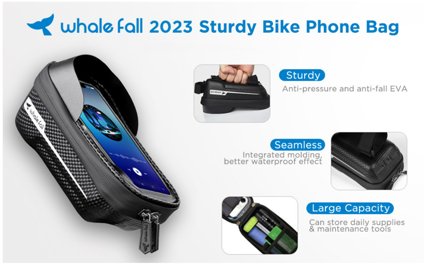 • ☔【Harder & Pressure-Resistant】All-in-one design with 3D die-casting process make Whale Fall EVA bike phone bag hard, pressure-resistant and waterproof. Therefore, this bike phone holder is durable, shake-proof, pressure-proof and non-forming. This bike bag the perfect and indispensable bike accessories.