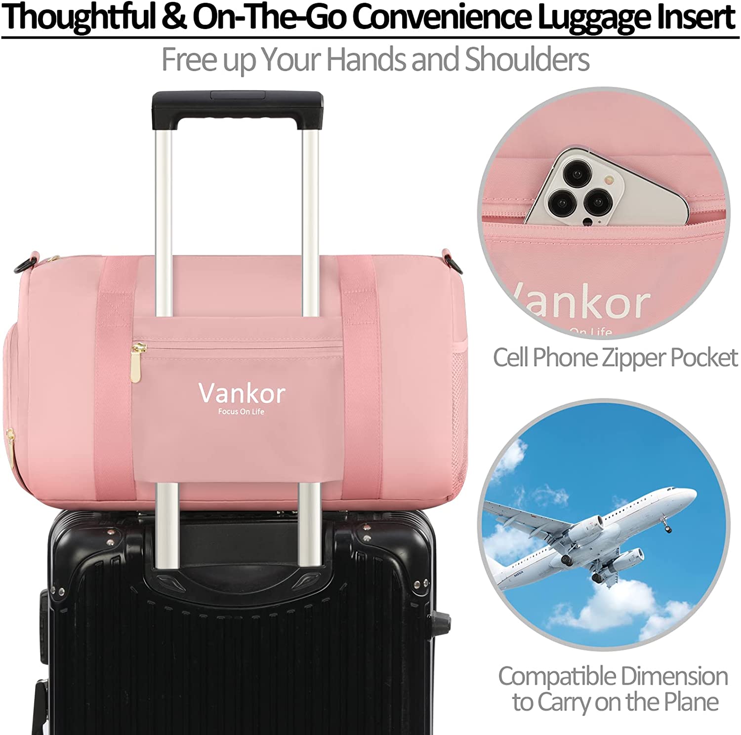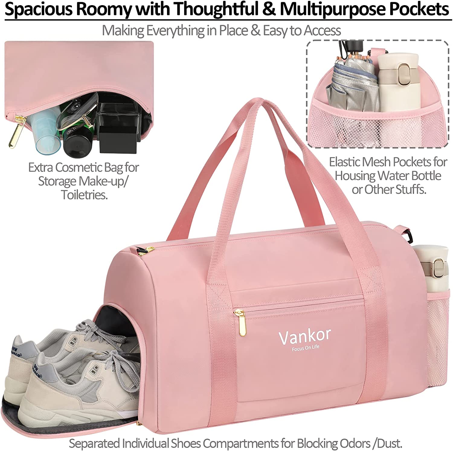 • 【LARGE CAPACITY】-Vankor’s gym duffle bag were designed with various pockets. One of the best features of the weekend bag is the separate zippered bottom pocket and side mesh pocket that allows you to store shoes or other items you want to keep apart from your clothes.Interior pockets for you can fill them with electronic or small personal items or other essentials required for work or personal travel. Such as laptop, toiletries, wallet, clothes and so on.