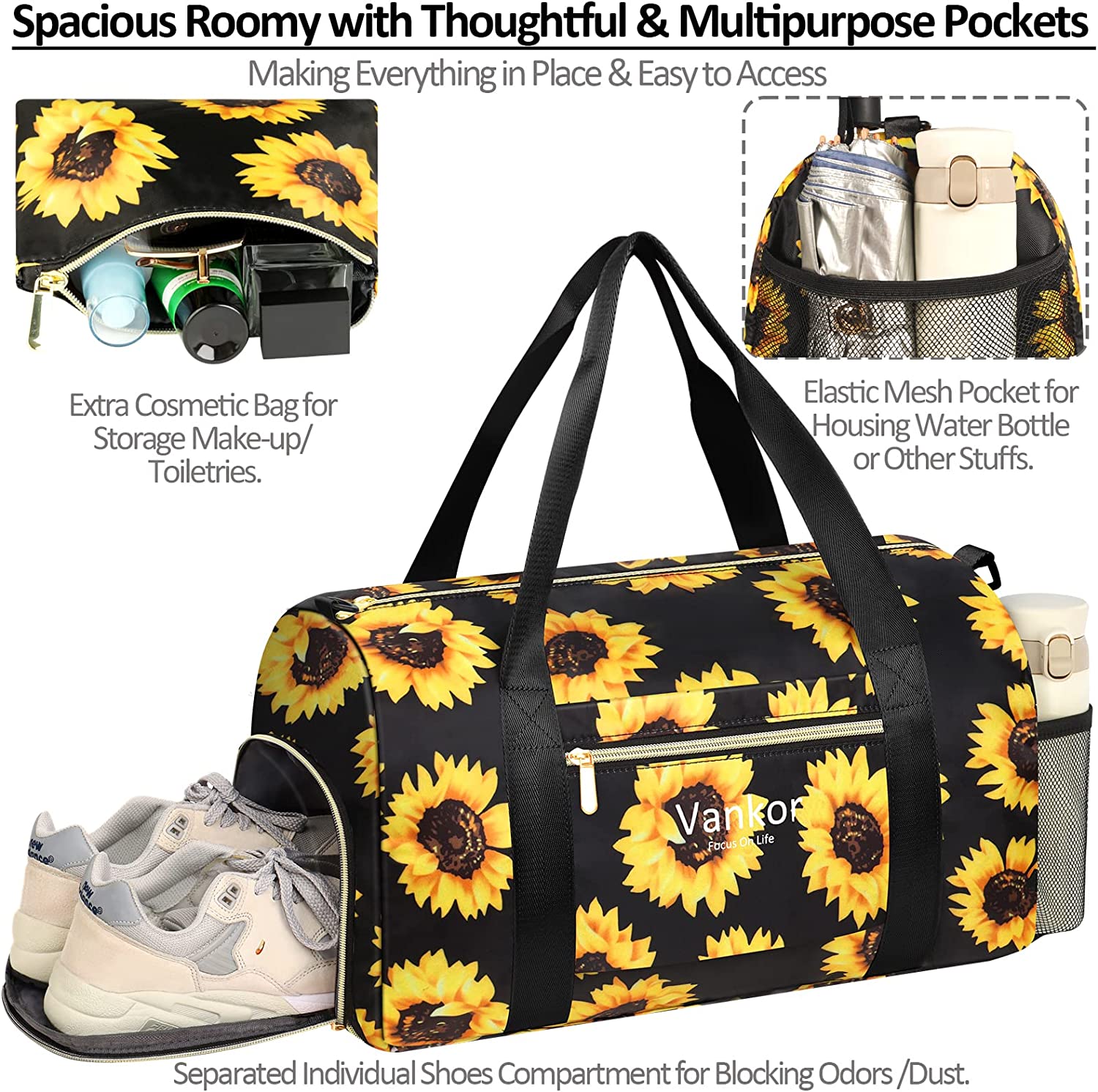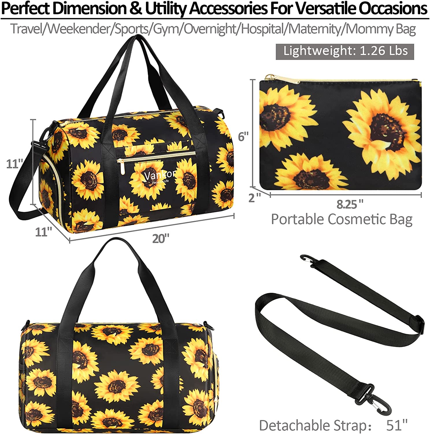 • 【LIGHTWEIGHT & PORTABLE】- Vankor's large duffle bag is very stylish and well-designed. These gym tote bags with plenty of storage for an overnight or extended excursion, and weighing just 1.06 lbs, its dimension is 17.5*10*10 Inch, this is an affordable option to add to your bags collection. Choose from colors like Black, Pink, Blue, Camo Black, Sunflower, Leopard Print, Marble, Cow Print. Adding new color collection for your daily life now.