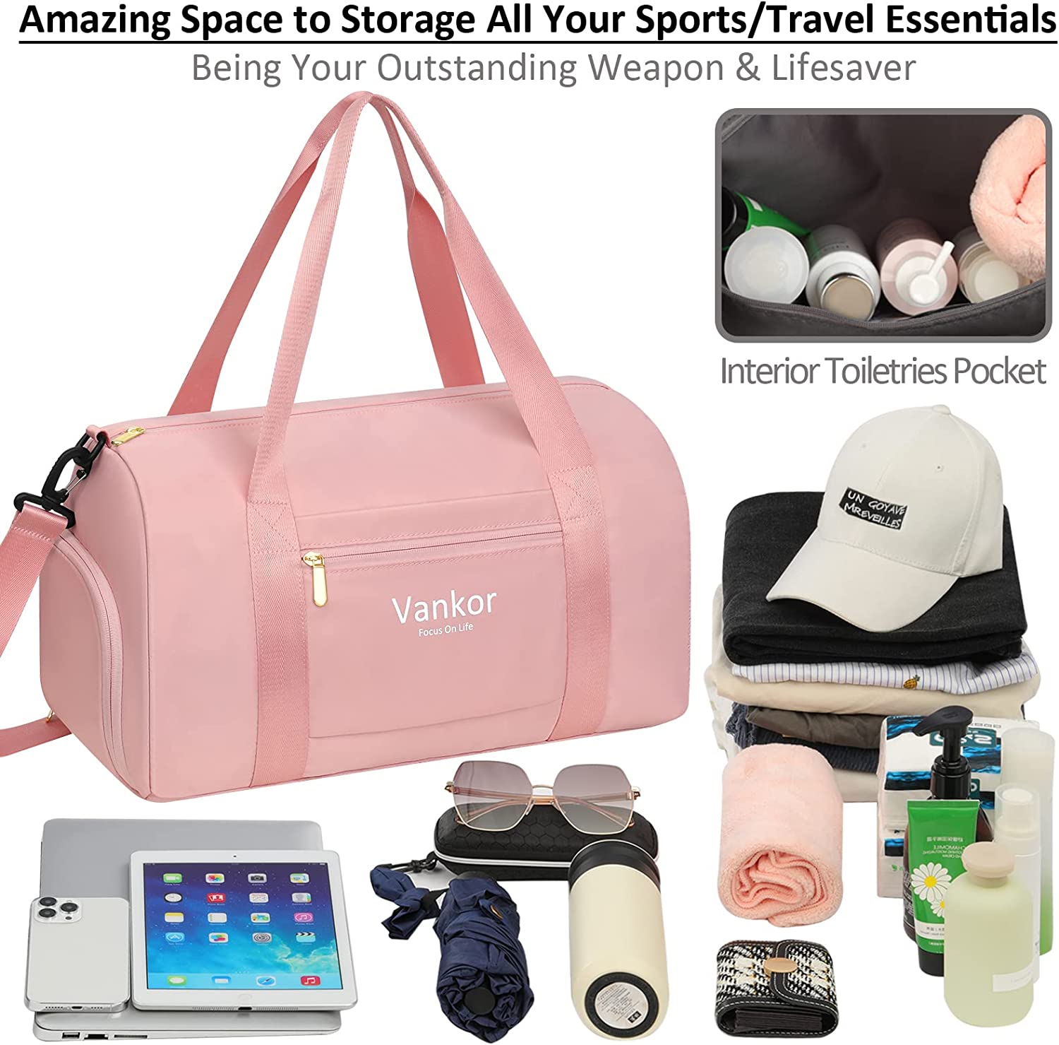 • 【DURABLE AND WATERPROOF】 -Vankor's heavy-duty and versatile gym bag is perfect for outdoor adventure and travel. The gym bag for women is constructed with recycled materials and a water-repellent coating. Top loop zipper pulls allow for easy access to the interior and for heavy loads, there's a reinforced yoke webbing system on the tote and haul handles.