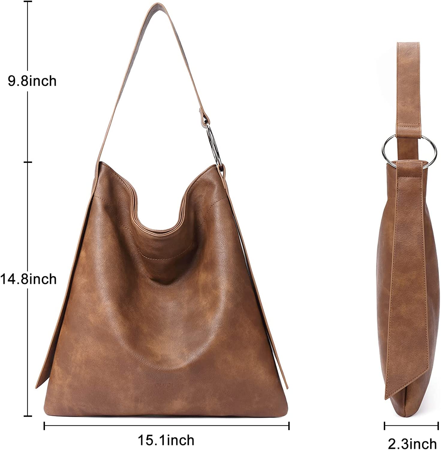 [Large Hobo Bag]: Stylish and simple design with a metal ring, magnetic lock, appears delicate and full personality, looks unique and tasteful, can be used as a handbag, large purse, hobo bag or shoulder bag for different occasions.