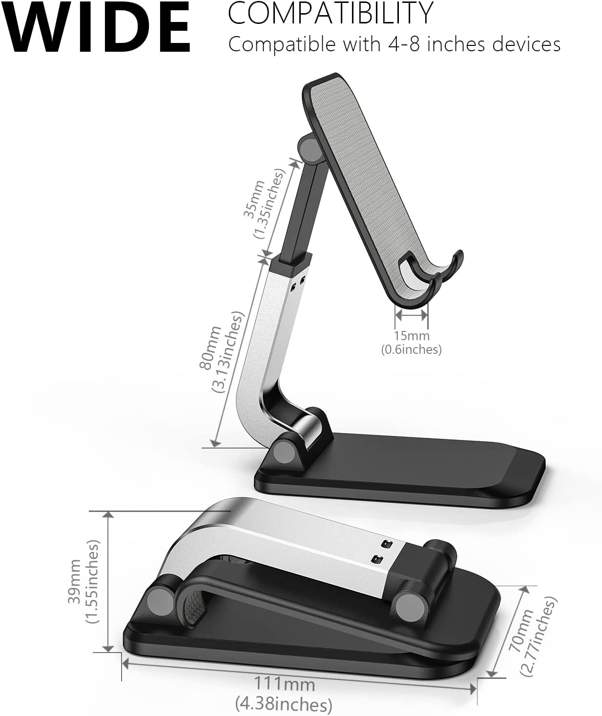• [Foldable and Useful] Lightweight, easy to use holds phone with or without case, holds your tablet also nonslip pad surface sleek look, foldable, and portable, you can easily put the cell phone holder in your bag and pocket. A perfect companion if you traveling, in the office, or at home
