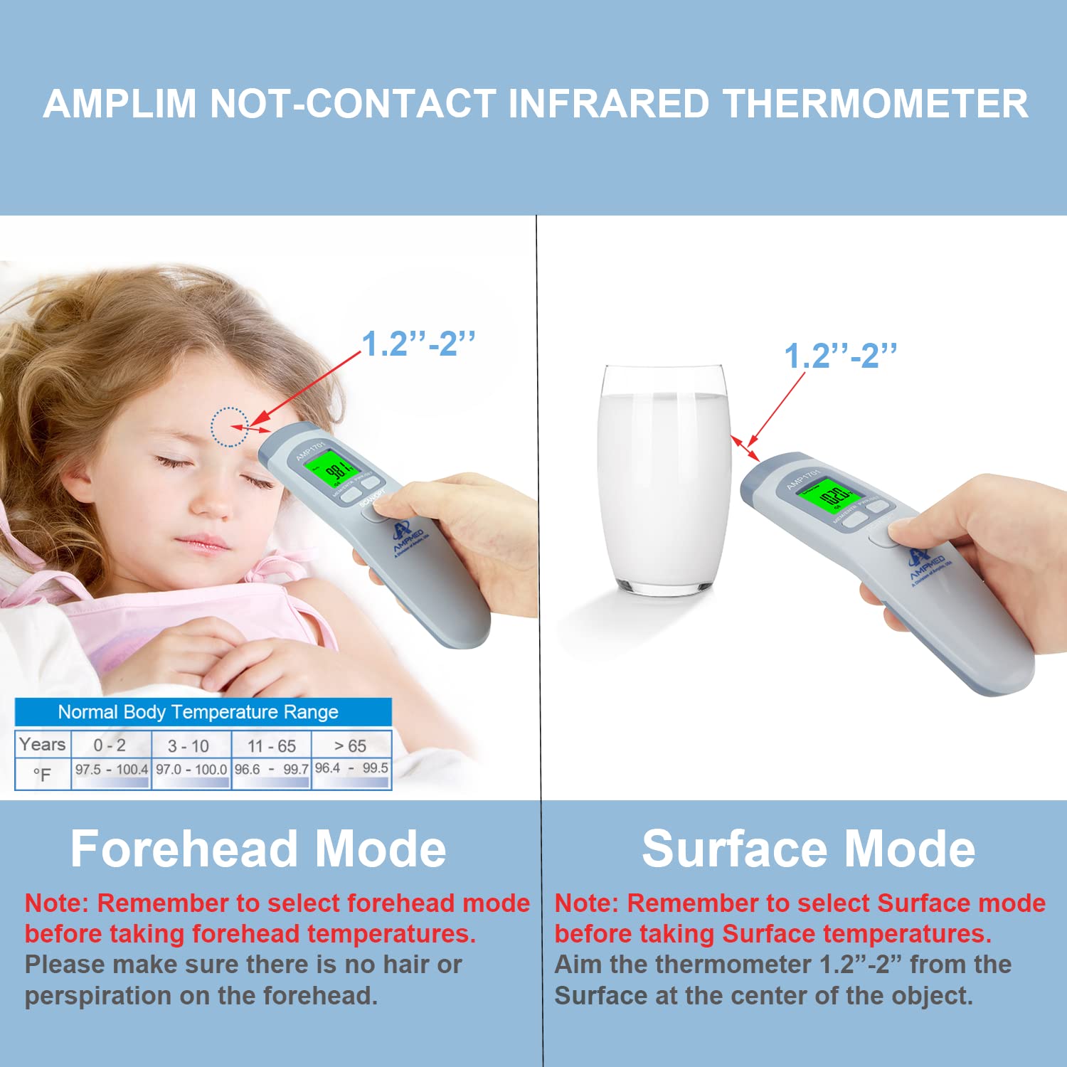 Use of this thermometer is not intended as a substitute for consultation with your physician. Note: It is clinically verified that the forehead temperature is about 0.5-1.0 F lower than oral temperature. Average normal forehead temperature is around 97 - 98.9 F. Please contact customersupport@amplim.com if you have any product issues. Be assured we will provide support.