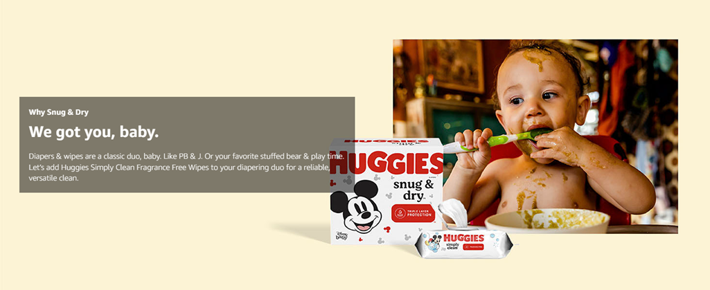 Deliver up to 12 hours of long-lasting protection, day or night, for your baby with Huggies Snug & Dry Baby Diapers. Snug & Dry features Triple Layer Protection that absorbs wetness in seconds and separates moisture from your baby's skin. These disposable baby diapers are great for when your baby is sleeping, crawling or walking because they have a contoured shape for better leakage protection. The stretchy waistband provides a secure fit and extra comfort for your baby. Each diaper also comes with a wetness indicator, a yellow line that changes to blue when wet, so you can always know when your little one needs a diaper change. Snug & Dry contains no harsh ingredients, as these baby diapers are as well as free of fragrances, lotions, parabens, elemental chlorine and natural rubber latex. Showcasing exclusive Disney Mickey Mouse designs as cute as your baby, Snug & Dry Diapers are available in sizes Newborn (up to 10 lbs), 1 (8-14 lbs), 2 (12-18 lbs), 3 (16-28 lbs), 4 (22-37 lbs), 5 (27+ lbs) and 6 (35+ lbs). Don't get caught without Huggies diapers! Sign up for Subscribe & Save to ensure you always have Snug & Dry Diapers on hand. Join Huggies Rewards+ powered by Fetch to get rewarded. Earn points on Huggies diapers and wipes, in addition to thousands of other products to redeem for hundreds of gift cards. Download the Fetch Rewards app to get started today! (*sizes 3-6)
