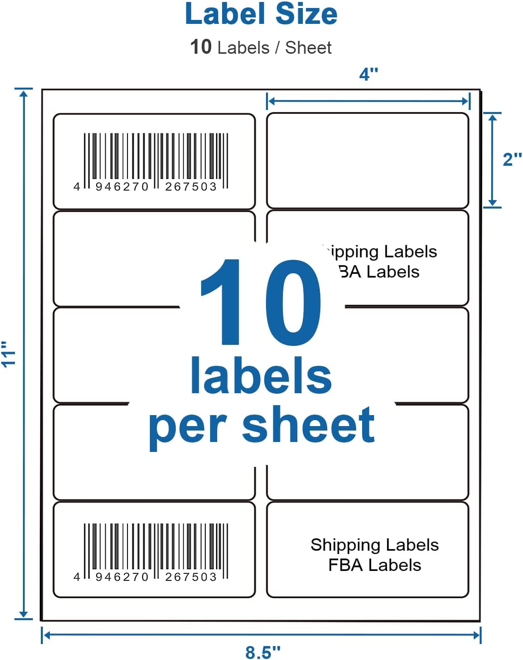 • 【FBA Label Size】2" x 4" Shipping Address Labels, Label Size: 2" x 4", Sheet Size: 8.5" x 11", 100 sheets, 1000 labels. FBA Shipping Address Labels are compatible with all Laser and Inkjet printers, Address Lables are Permanent Adhesive and Easy to peel.