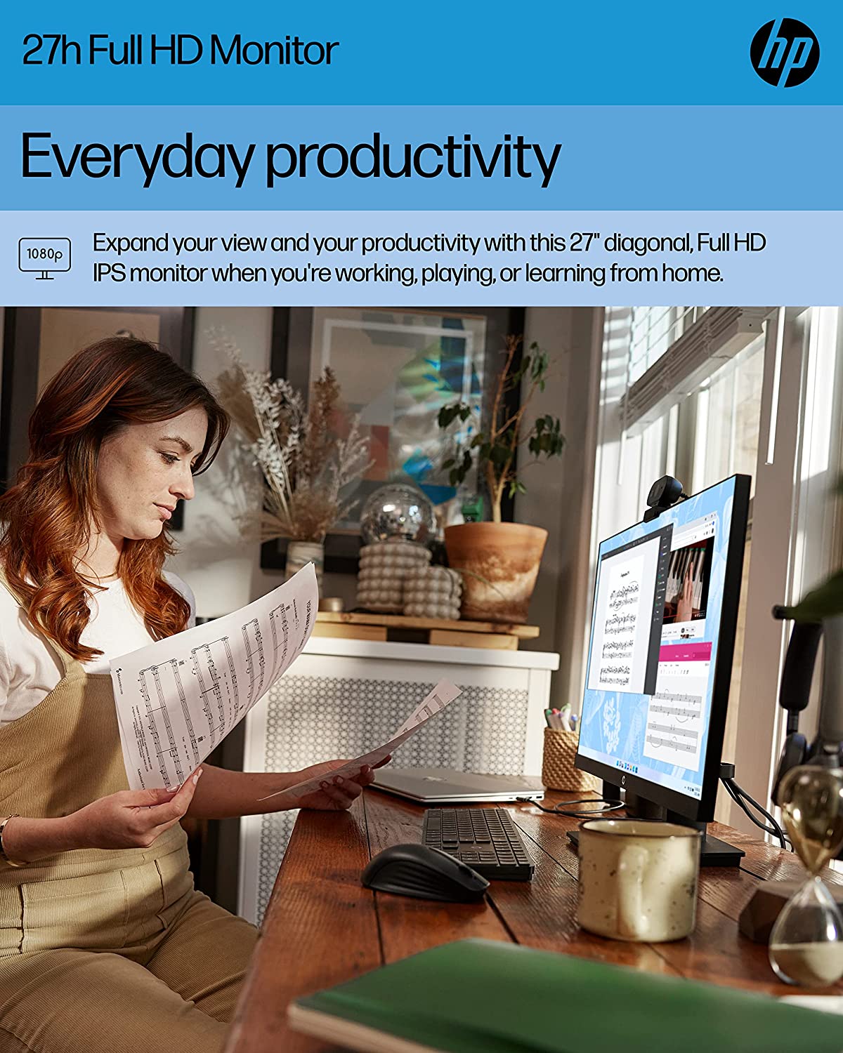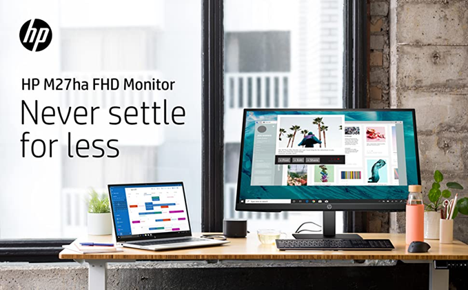 HP M27ha FHD Monitor-Full HD Monitor(1920 x 1080p)- IPS Panel and Built-in Audio-VESA Compatible 27-inch Monitor Designed for Comfortable Viewing with Height and Pivot Adjustment-(22H94AA#ABA) black