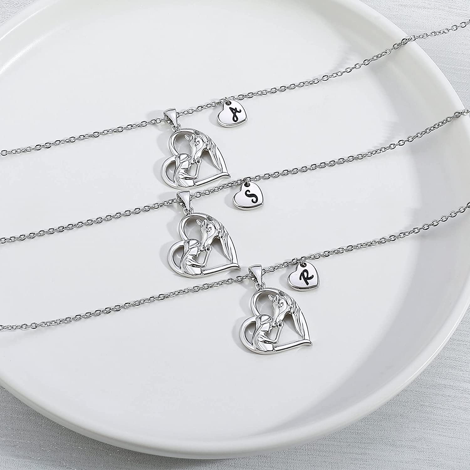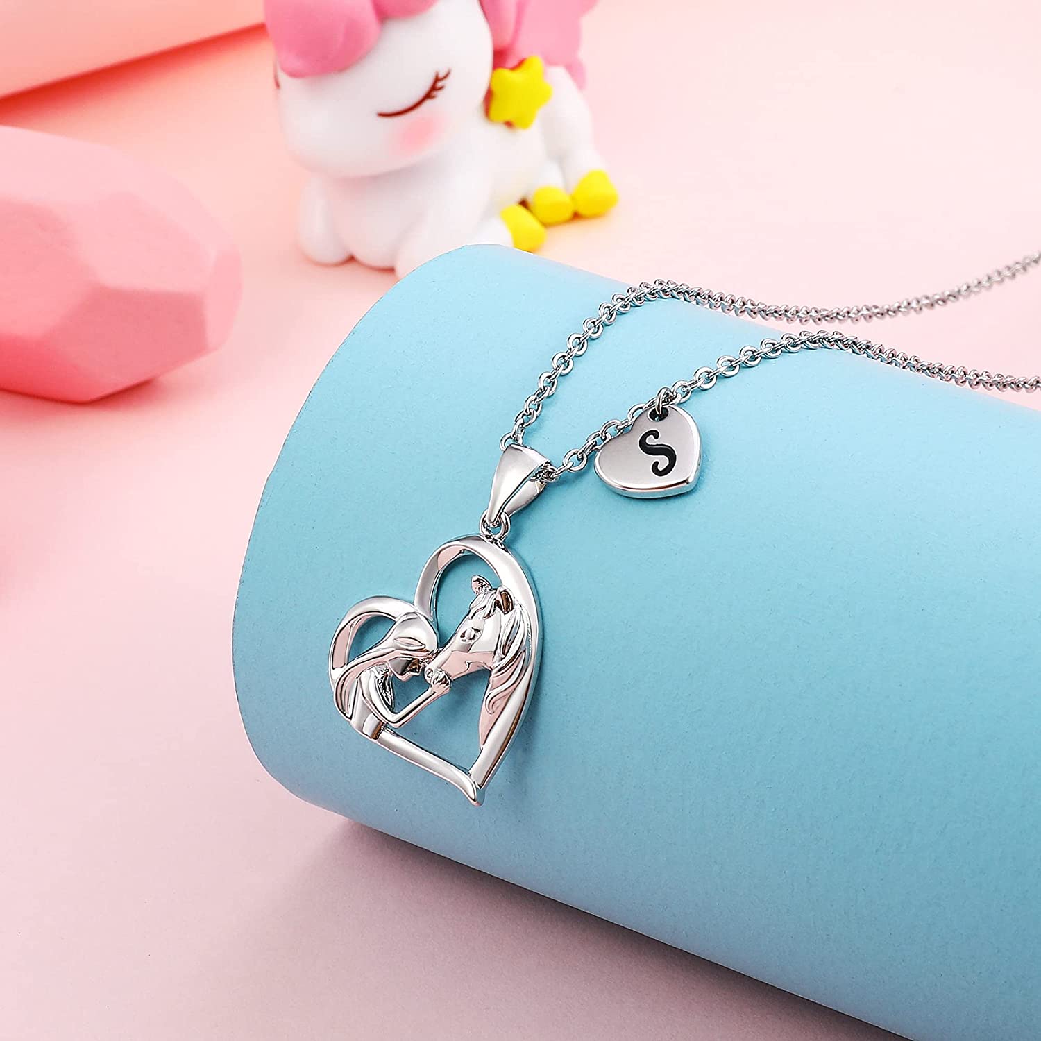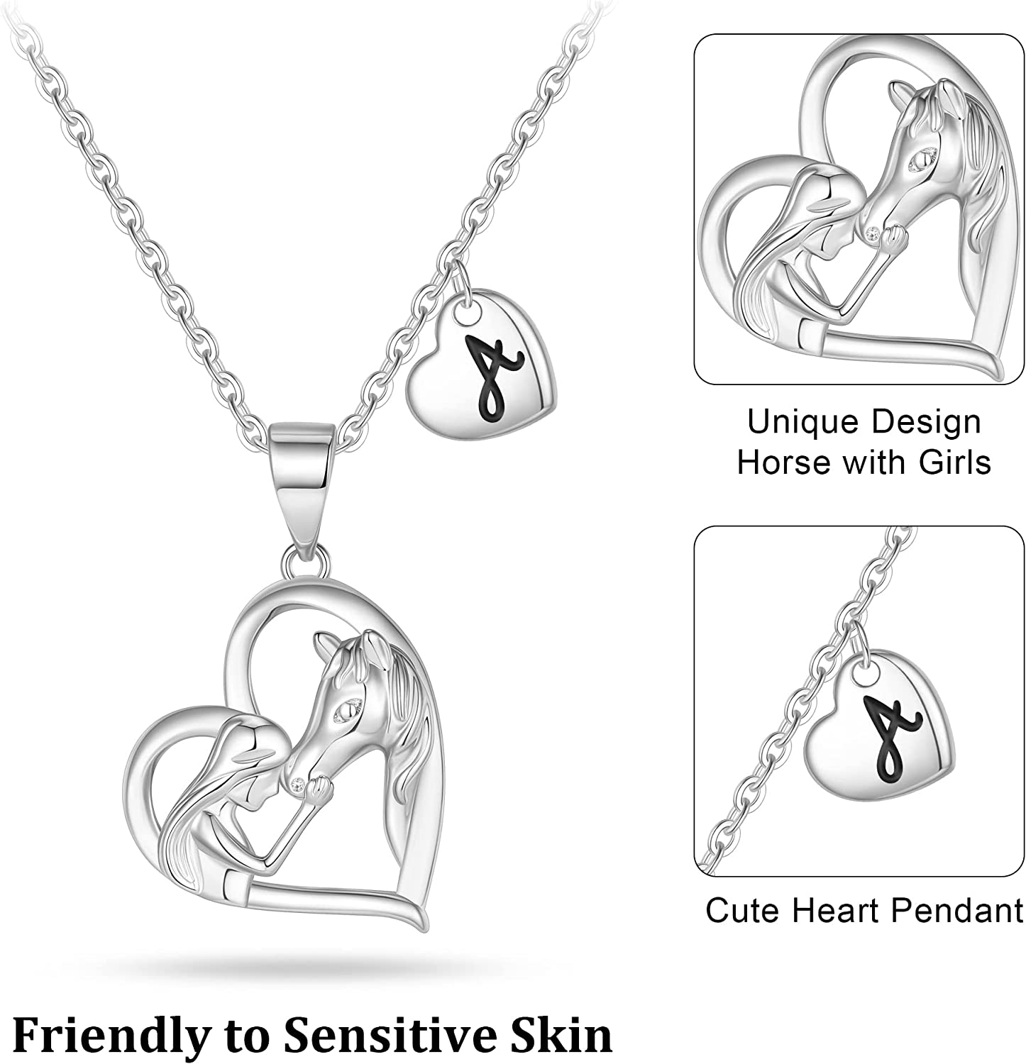 Horse Necklace Horse Gifts for Girls, Heart Pendant Initial A Necklace Horse Necklaces for Girls Women Little Girls Jewelry Horse Necklace Jewelry Kids Necklace for Girls Initial Necklace for Girls