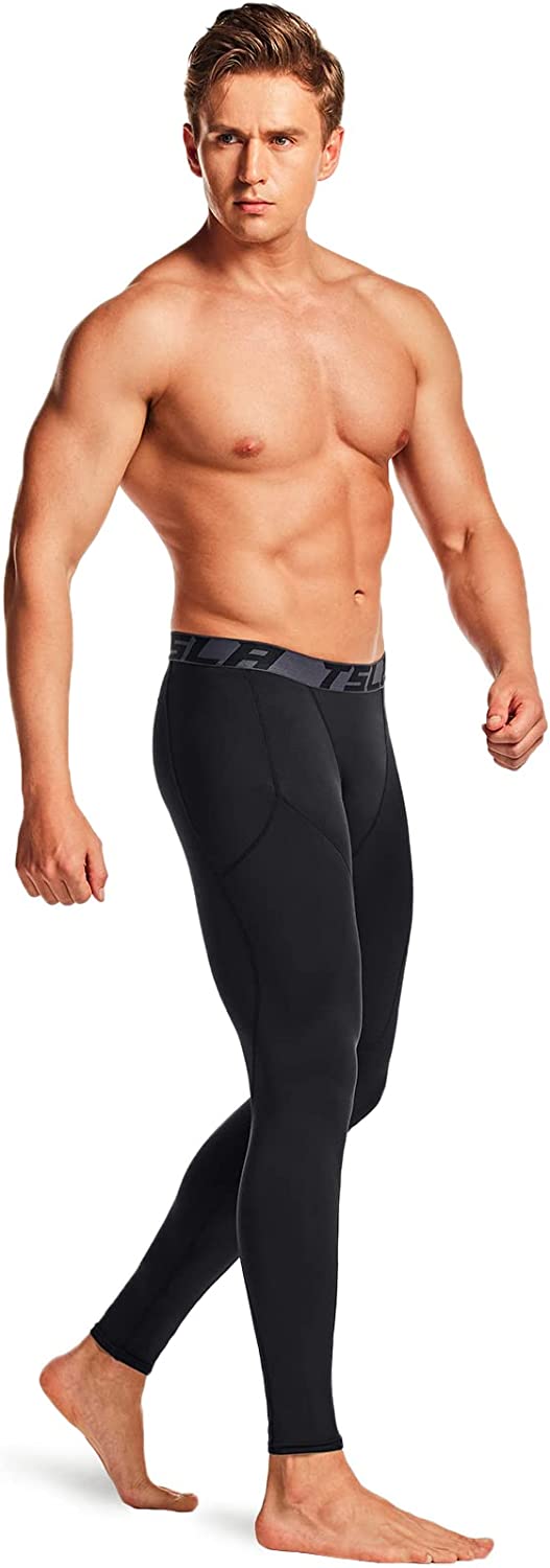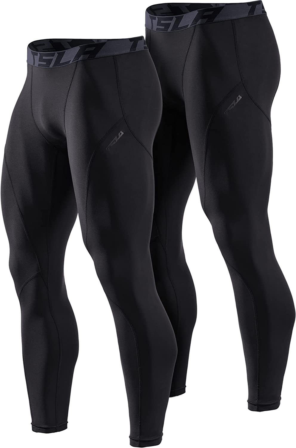 TSLA 1 or 2 Pack Men's Thermal Compression Pants, Athletic Sports Leggings & Running Tights, Wintergear Base Layer Bottoms