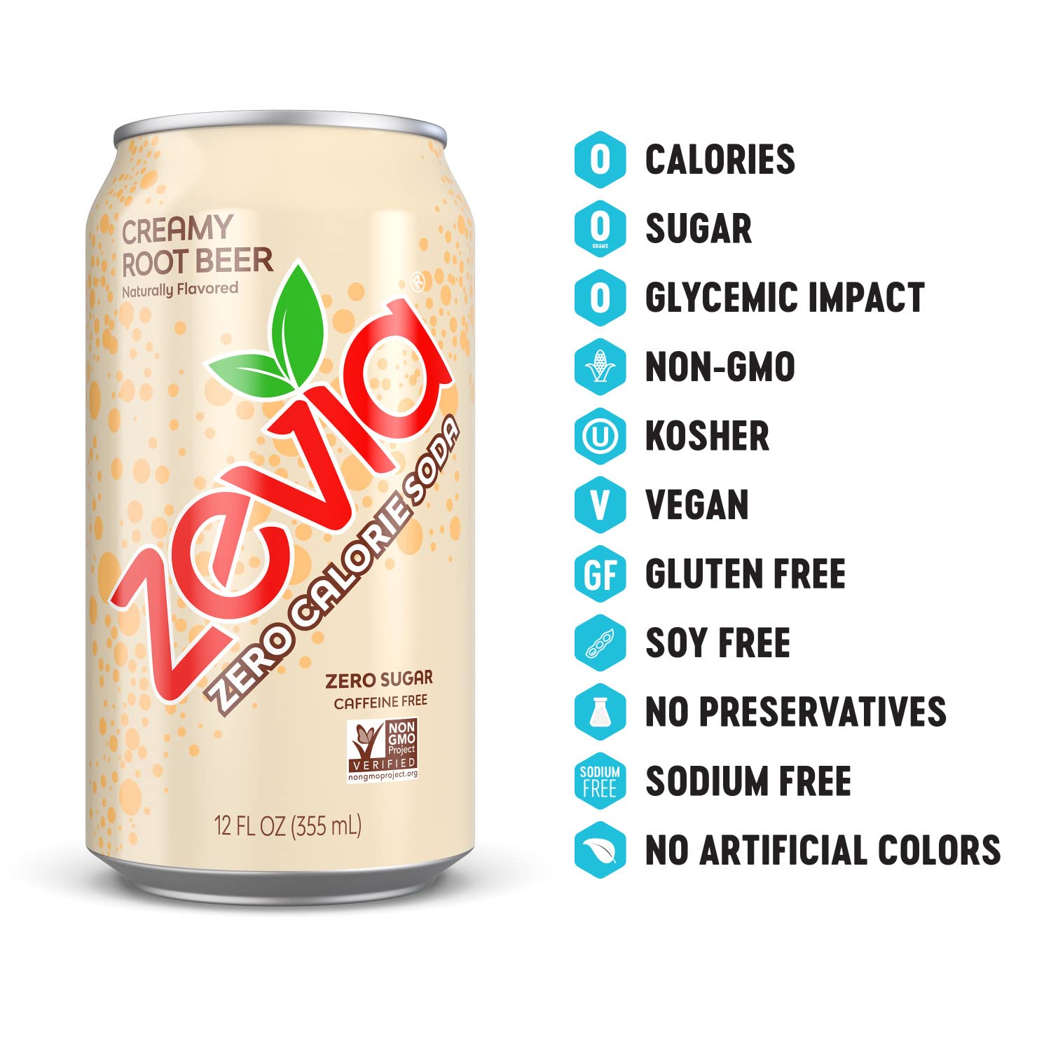 • Velvety smooth and full of rich flavor, Creamy Root Beer is a zero calorie, zero sugar beverage with new, yet classic taste. Enjoy your Zevia Creamy Root Beer straight out of the can or pour into a frosted mug and add a scoop of vanilla ice cream.