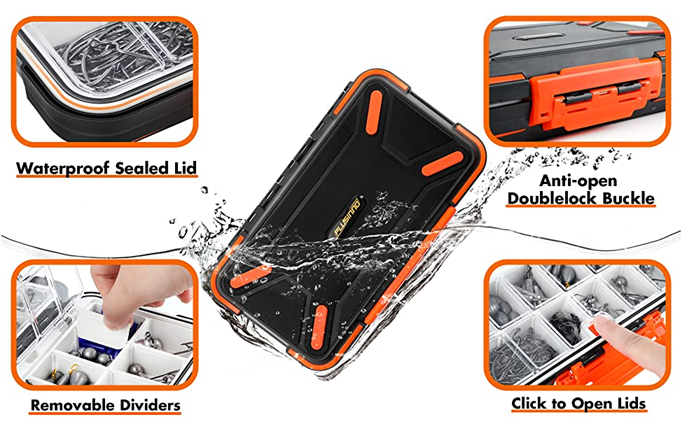 Excellent tackle box designed with premium materiel made of heavy-duty double-layered plastic and anti-collision shock-absorbing strip that is for strong protection! And high-strength lock, lever-type edge lock design, super secure and easy to use. The rubber belt around the perimeter of a gap has quite an excellent waterproof performance.