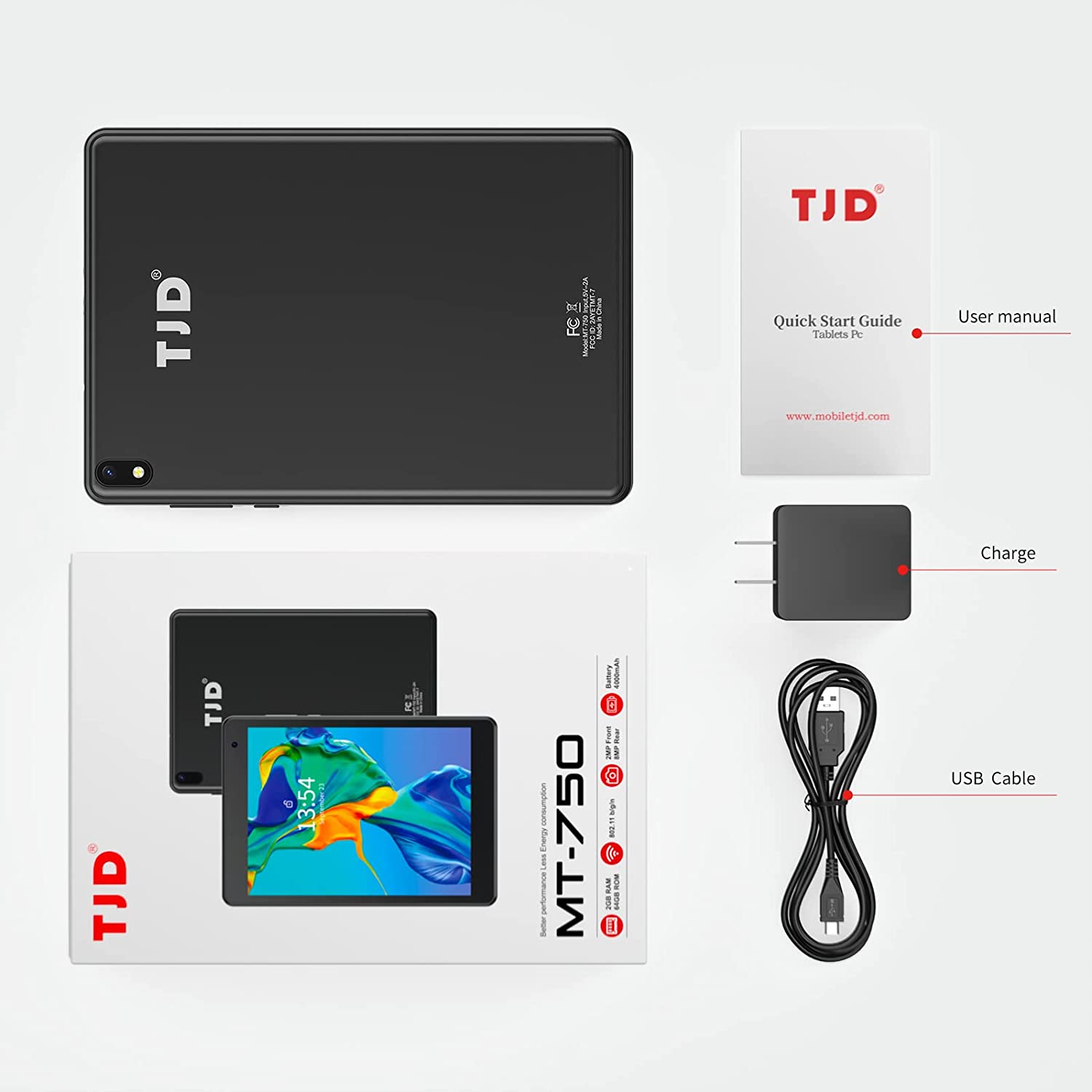 • 【Higher-Performance】TJD 7.5inch Android Tablet With Powerful Quad-core Processor(Up to 1.6GHz)2GB RAM 64GB ROM Storage (MicroSD Expandable can up to 512GB) Quick App Launches And Overall performance