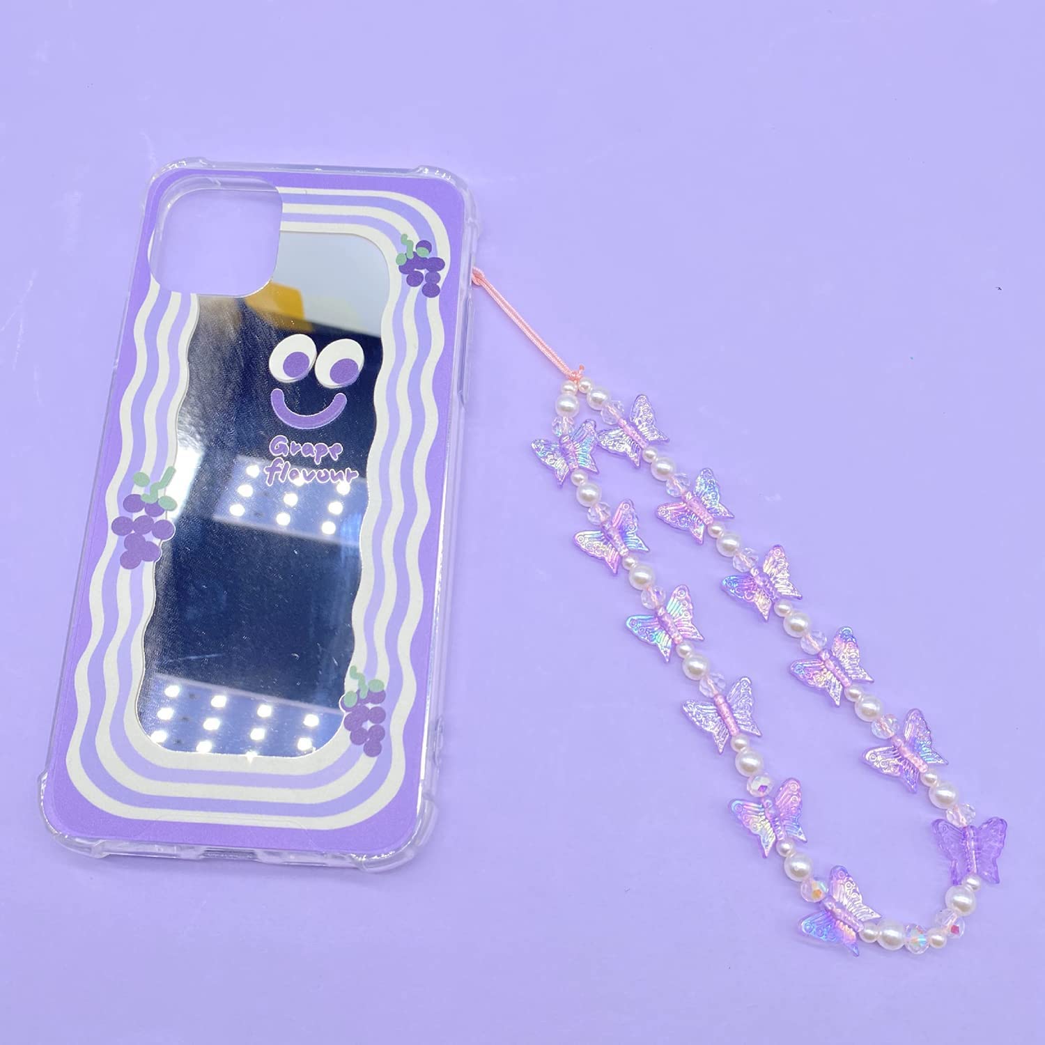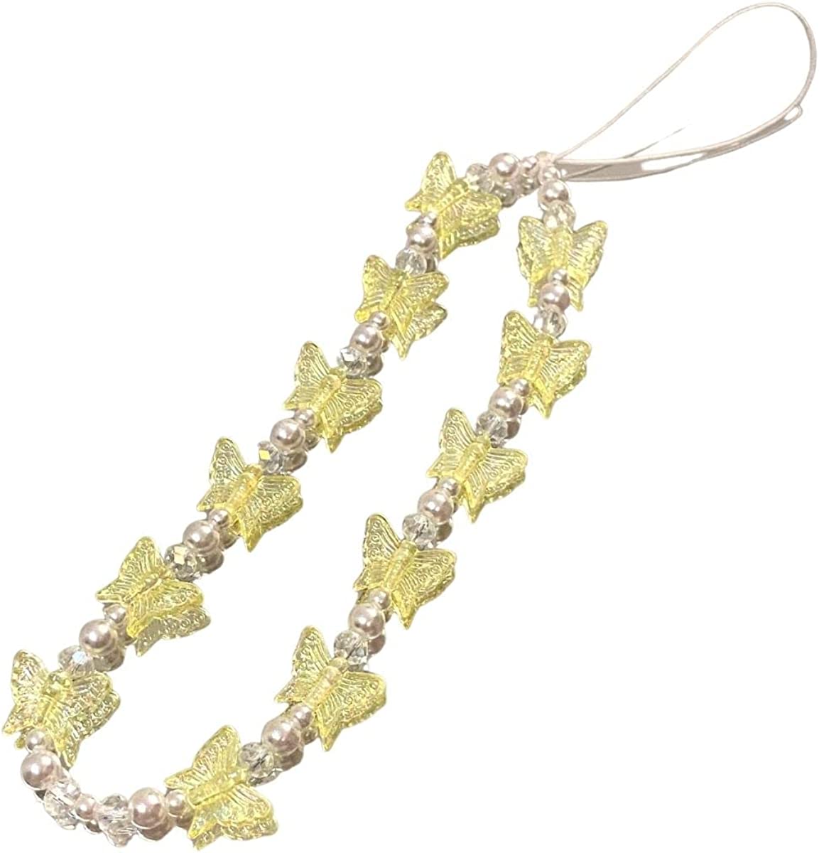 Fuqimanman2020 Butterfly Beaded Phone Lanyard Strap Charms Y2K Imitation Pearl Mobile Phone Chain Anti-Lost Colorful Acrylic Charm for Women and Girls