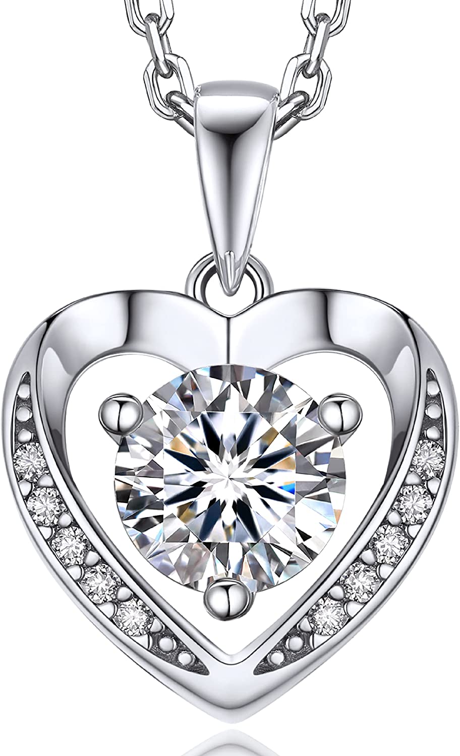 MomentWish Heart Necklaces for Women, 1 Carat Moissanite Pendant Necklace, D Color VVS1 Simulated Diamond 925 Sterling Silver Heart Pendant Necklace
