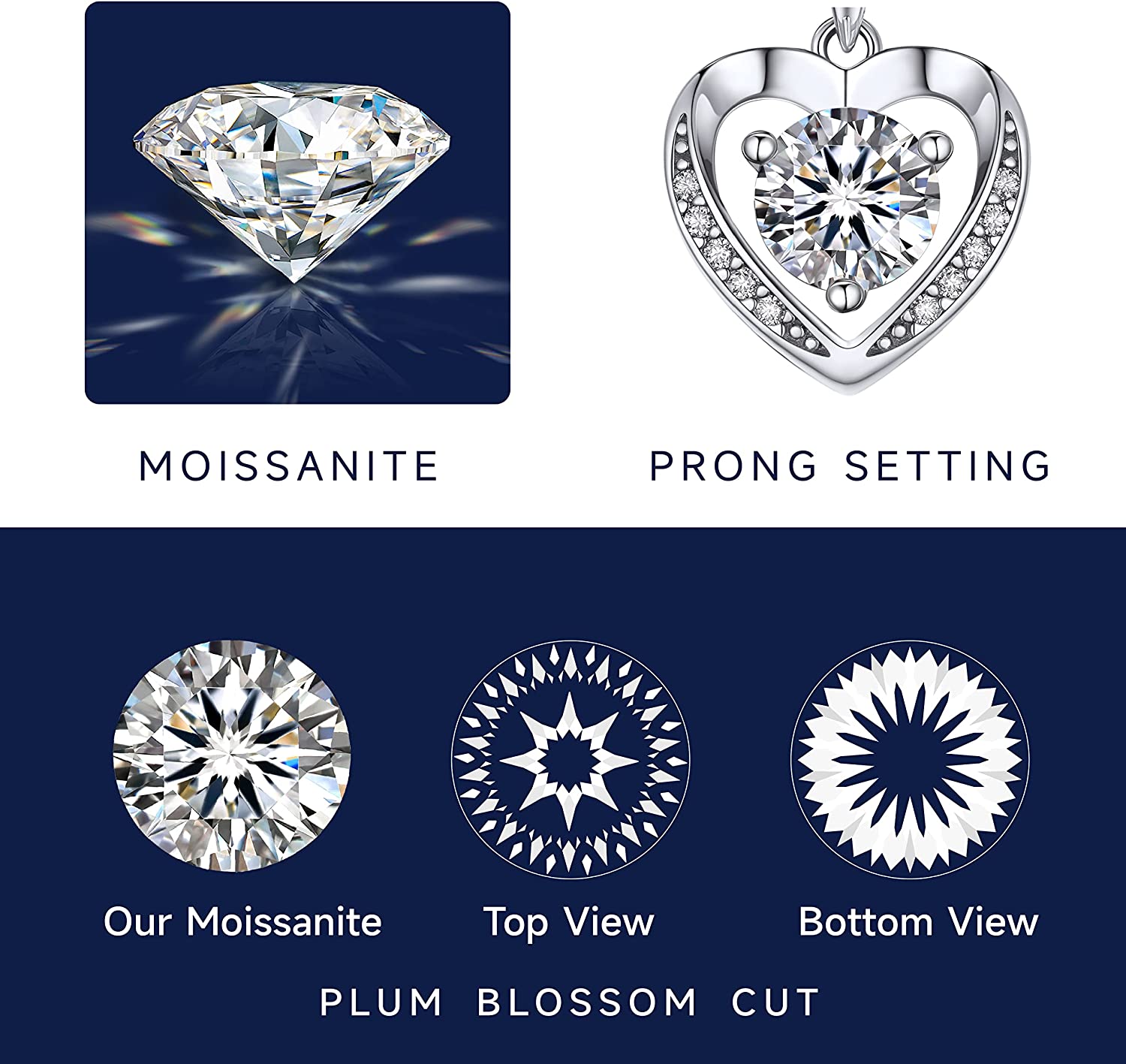 • ?【Excellent Craft】➣ This moissanite necklace for women is adopted upgraded plum blossom cut and excellent polished craft, more sparkling and clean. Each stone has been carefully selected, all of which are D color VVS1 clarity. And our moissanite has passed the GRA moissanite certificate, which is traceable and with a unique code.