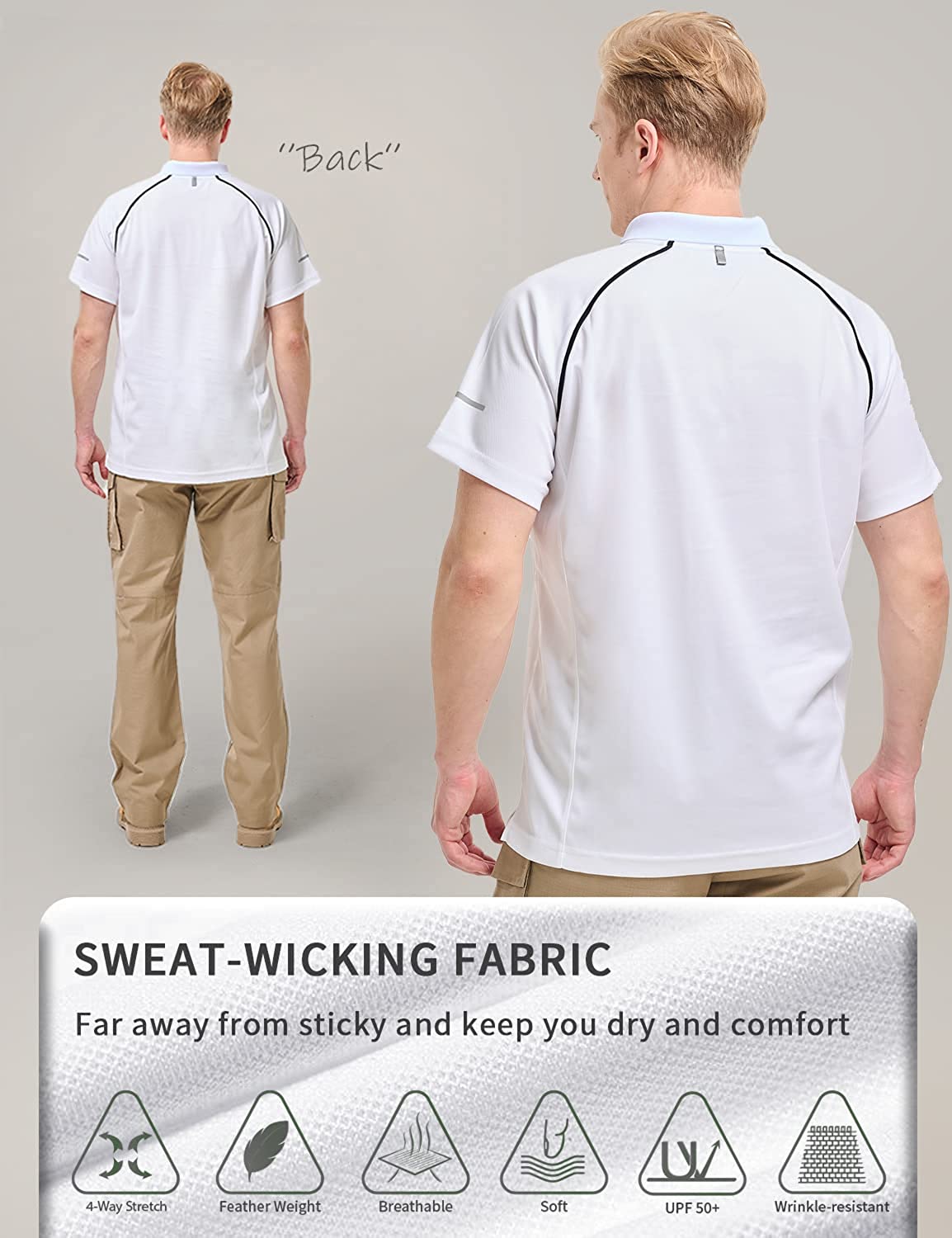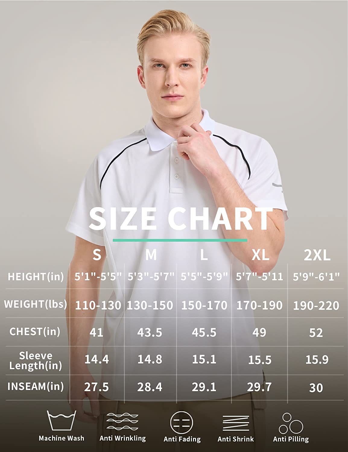 • Sweat-Wicking Fabric:This men's dry fit polo shirts use soft,breathable and lightweight fabric,far away from sticky and keep you cool and comfort.More stretch and anti-fade,pilling,shrink and wrinkle-resistant,perfect for business,sports and casual look.
