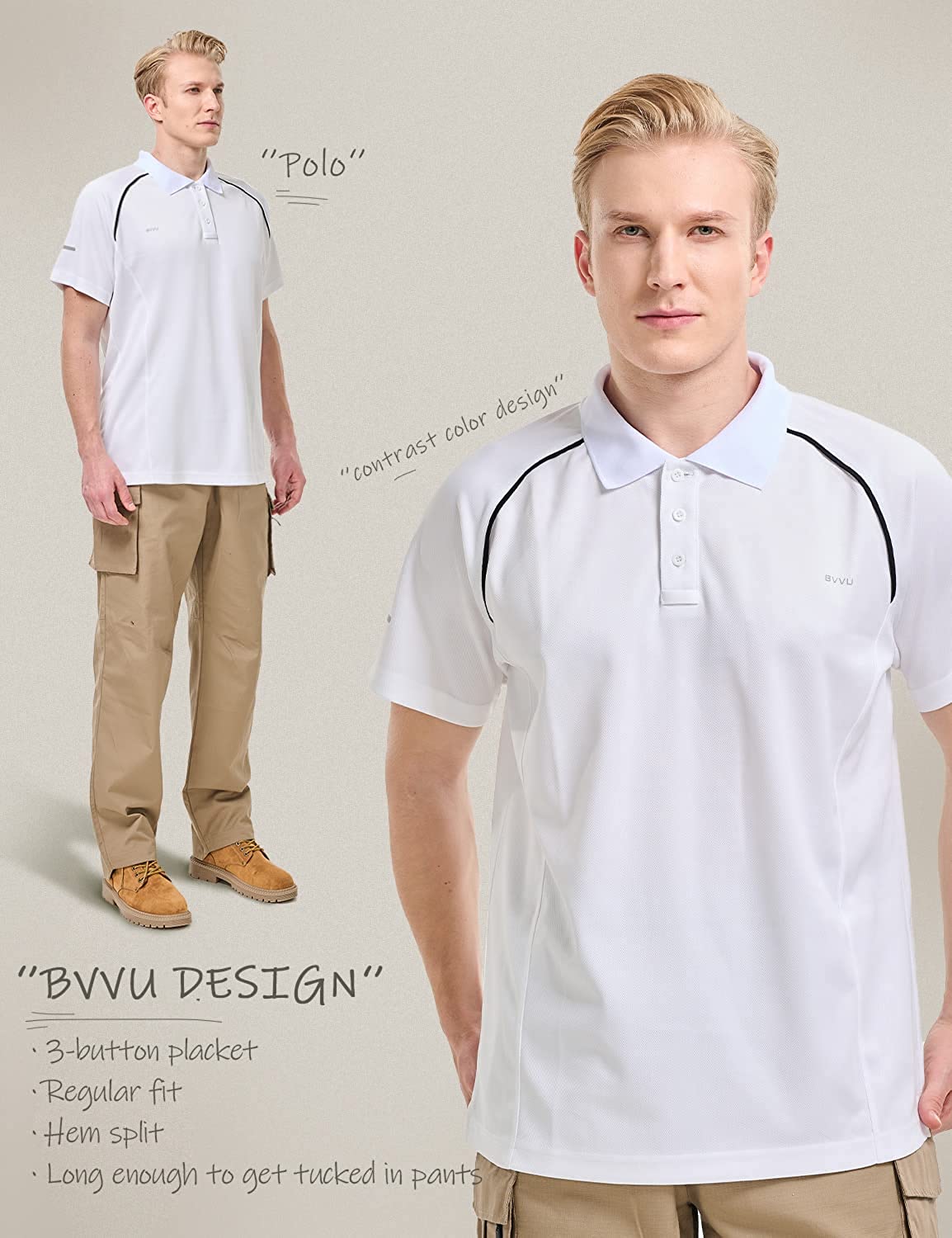 BVVU Mens Outdoor Polo Shirt Short Sleeves Performance Tactical Golf T-Shirts Athletic Moisture Wicking Casual Tees