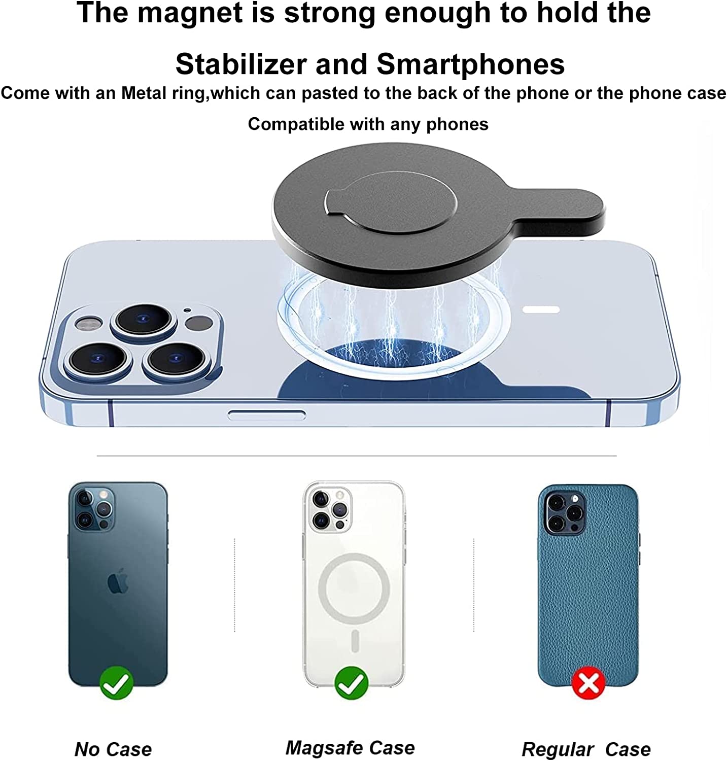 In the Box: 1x Gimbal Adapter , 1x Magnetic Ring (Paste it on the back of the phone or phone case, compatible with Magsafe and Android, and all phones can be used)