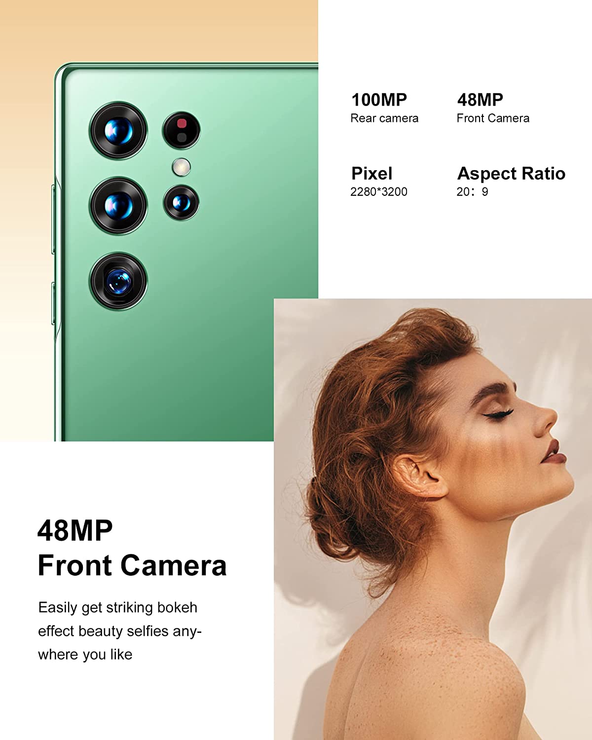 • 【7.3 Inch HD+ 48/100MP Cellphones 】7.3 "Max Vision HD+Display, with 90 Hz refresh rate. Making games, movies and video chat faster and smoother on the ultra-wide screen. C21s Android 11 Cellphone with 48MP front camera, 100MP rear camera autofocus, you can take amazing photos in any light, as well as beautiful blurred portraits and incredible detail close-ups.