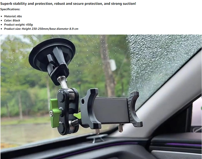 - Multi-function Car Phone Mount: The latest style in 2023.It has a super suction cup, which can be adsorbed on any smooth object. It is applied to most cars, pickup trucks, SUVs, taxis. A perfect assistant for Uber, Lyft drivers.If you like to travel by car, it will perfectly record the scenery along the way, just adjust the angle of the mobile phone holder before driving.It can be adsorbed on any flat place, windshield, window glass, or sunroof glass, etc