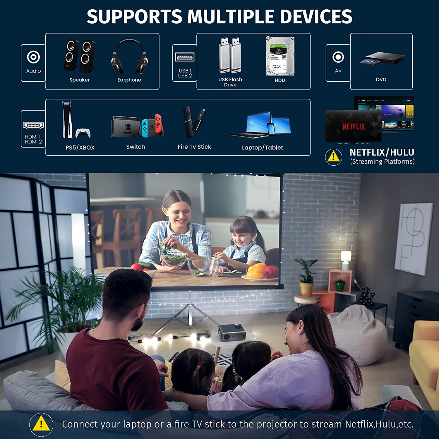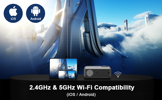 • ?【Native 1080P, 15000L & 550 ANSI Lumens, 4K supported】 2023 upgraded WiFi projector, using the original physical resolution of 1920x1080, has 3 layers of refractive glass lenses. Compared to our competitors who use single layer lenses, we use multi-layer refractive glass lense technology to reduce projecting blurry edges on screen. Its display is calculated to render sharper resolution to the full screen. It has 550 ANSI lumens, much brighter and more colorful than other 1080p projectors.
