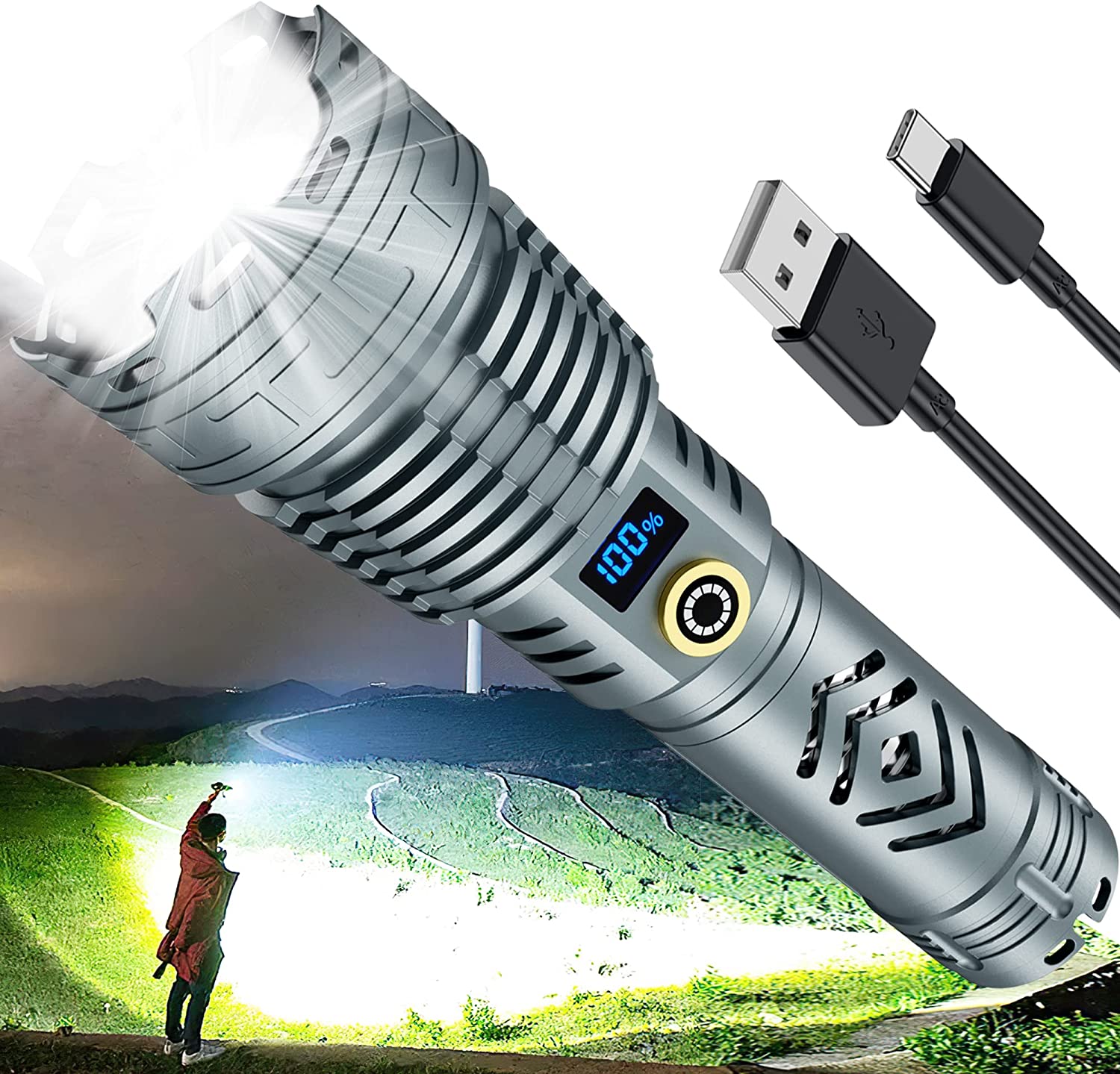 • ?【5000mAh BATTERY & TYPE-C FAST CHARGING 】LK360-DS rechargeable tactical camping flashlight is equipped with Type-C fast charging interface, which is not easy to wear and more durable. The rechargeable led flashlight is equipped with an upgraded 5000mAh flashlights high lumens rechargeable battery, which can work for 8-20 hours and has a service life of 200,000 times. Solved the problem of over-discharge and over-charge.