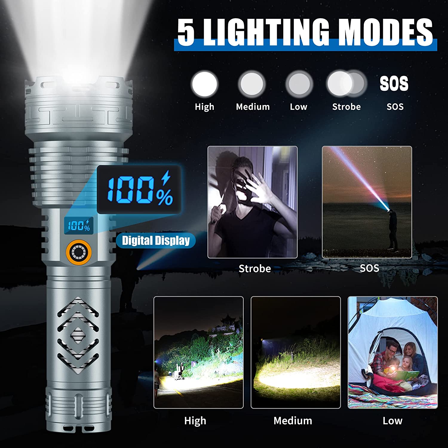 Zavuxo Flashlights High Lumens Rechargeable LED Flashlight, Super Bright Tactical Flashlights 180000 Lumens Handheld Flashlights with 5 Modes, Zoomable, Waterproof Flashlights for Emergencies Camping