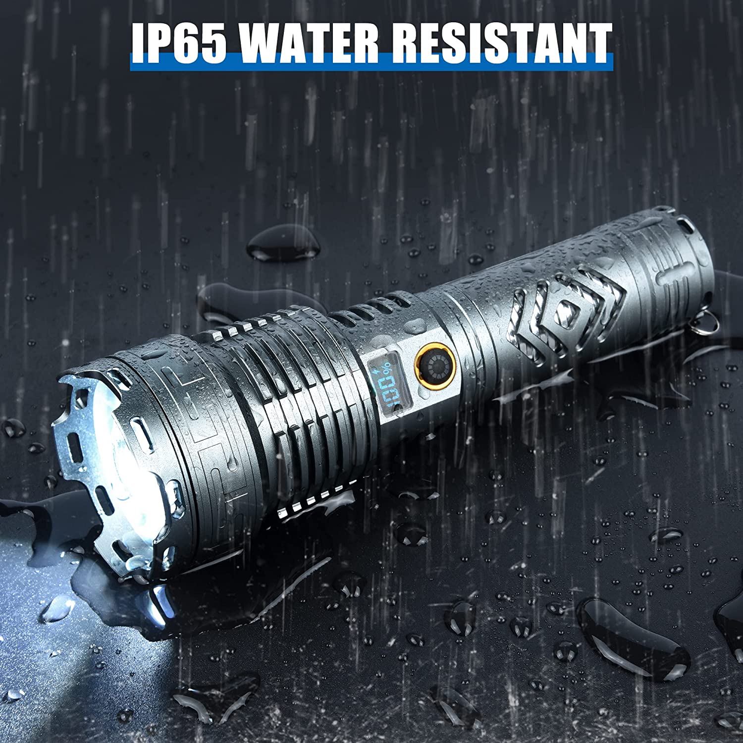• ?【IP65 WATERPROOF FLASHLIGHT】LK360-DS super bright waterproof flashlight adopts a thickened rubber sealing ring, which reaches IP65 waterproof grade. The high lumens tactical flashlight has better waterproof performance and is not easy to be invaded by dust. Water spray from any angle will not affect the use. The normal use of the rechargeable waterproof flashlight can also be guaranteed in severe weather such as heavy rain and snow.
