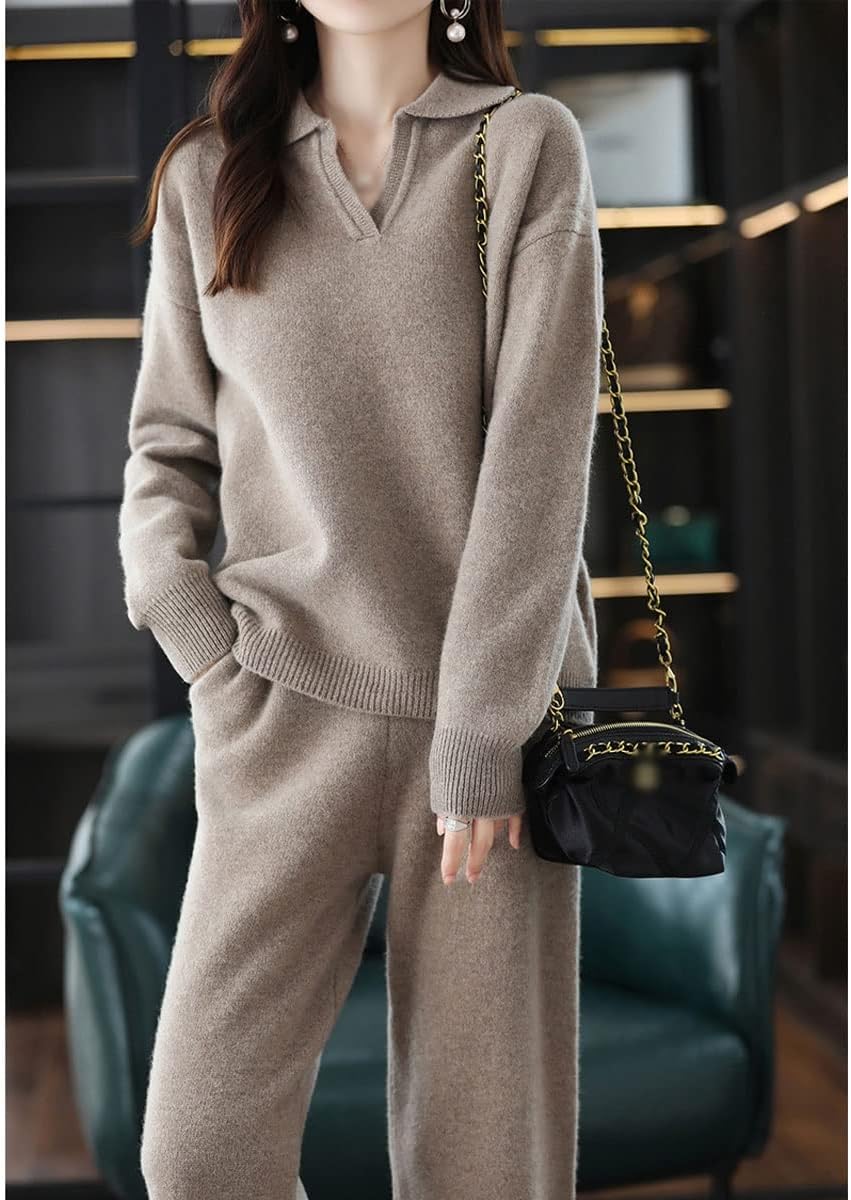 Walnut Casual Wide-Legged Pants Knitted Suit Autumn and Winter Loose Wool Sweater Top High-Waisted Pants Two-Piece Suit (Color : D, Size : M Code)
