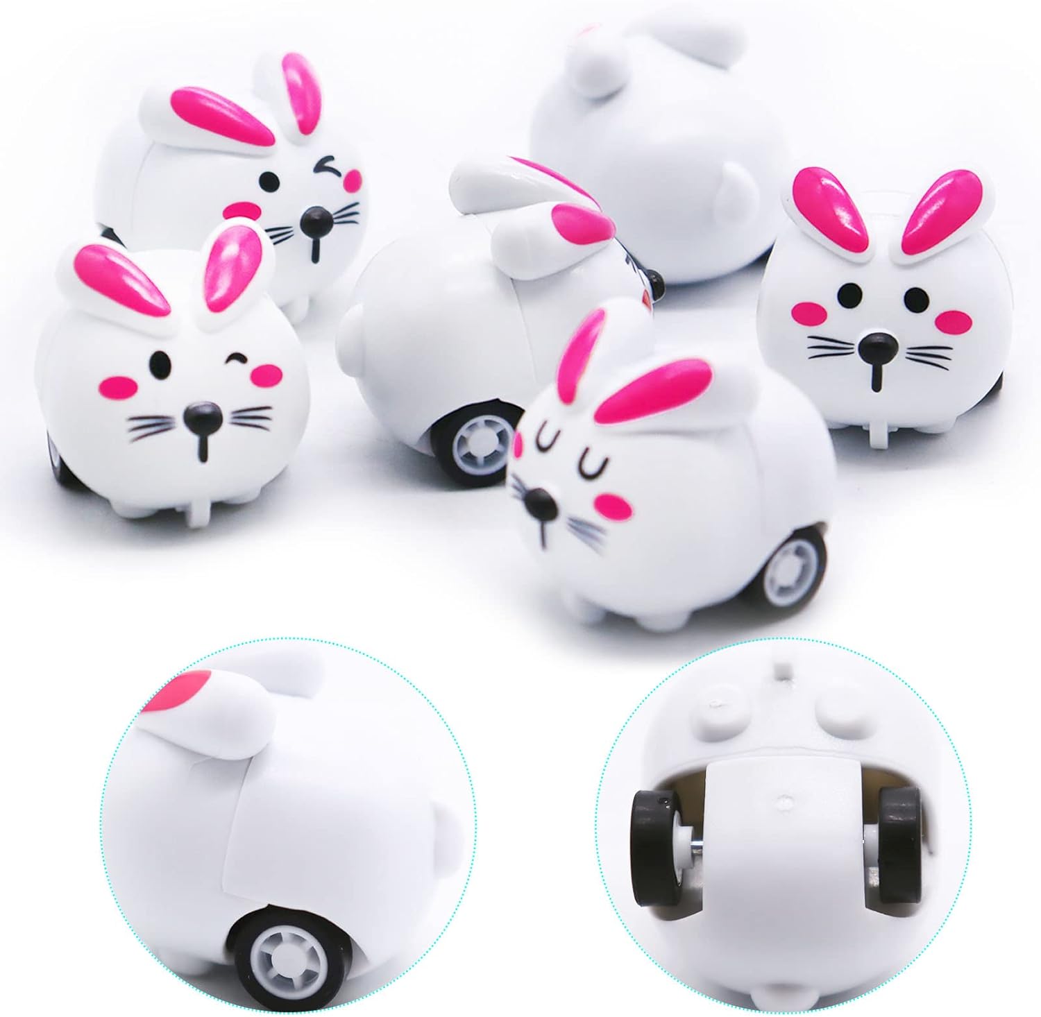 • 【Design】The body of the car is round and smooth,and the return function is strong,just gently pull back,the car will run for a long distance;These rabbit pull back cars with enough quantity are perfect toys for Easter.