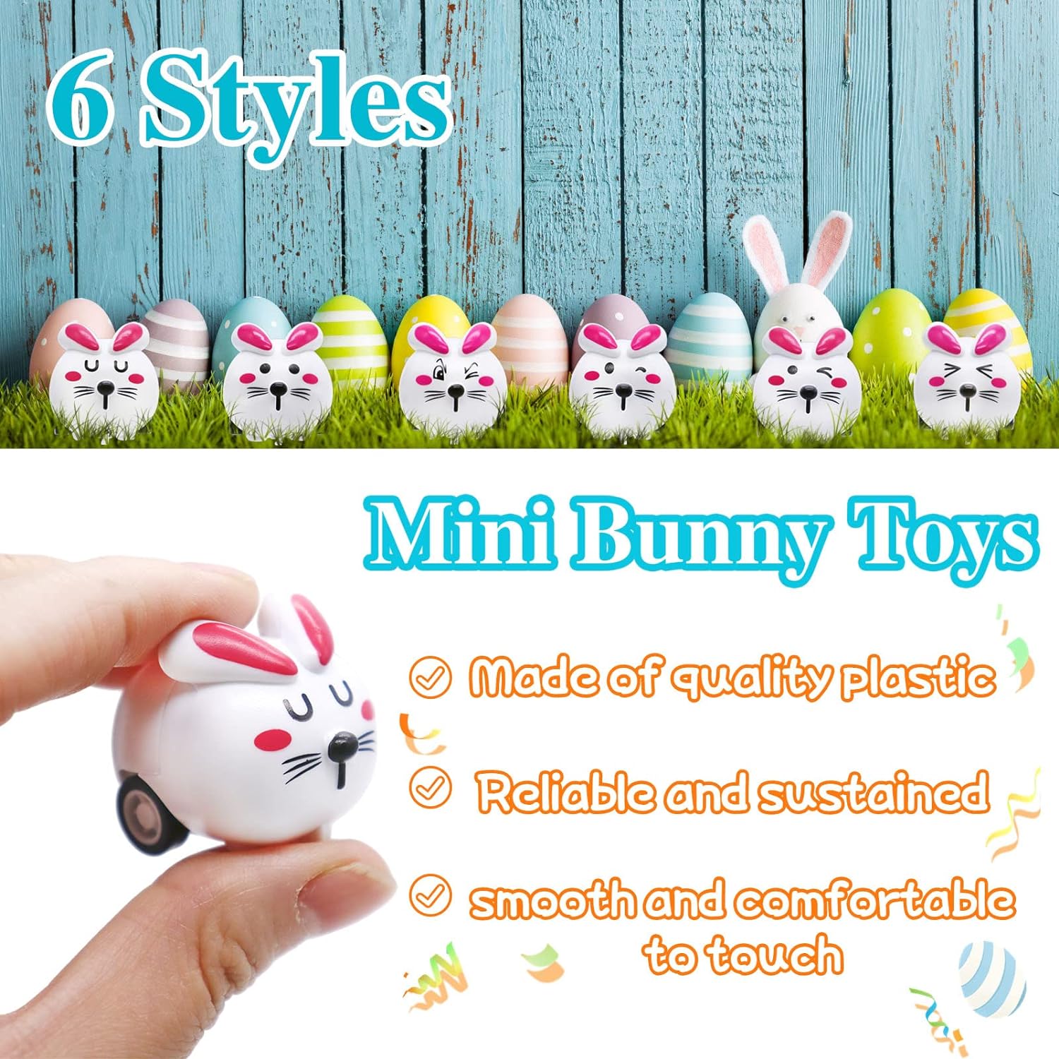 • 【Material】Each Easter toy is made of quality plastic,reliable and sustained,not easy to deform or break,and can be kept for a long time.The surface of the toy is smooth and comfortable to touch.