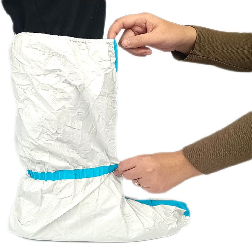 • The durable knee high safety feet protectors provide secure fit. Excellent protection in different environments, especially you want to keep your shoe clean in a wet environment.