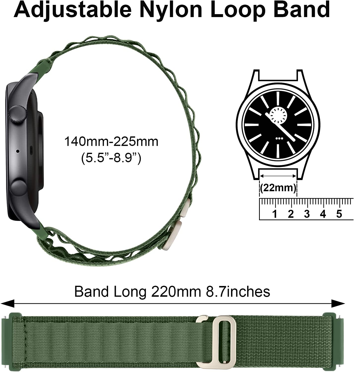 AK Nylon Bands for Amazfit GTR 4/ GTR 3 Pro/ GTR 3/ GTR 2e/ GTR 2/ Amazfit GTR 47mm, 22mm Quick-Release Adjustable Soft Smartwatch Strap with Hook Buckle for Women Men