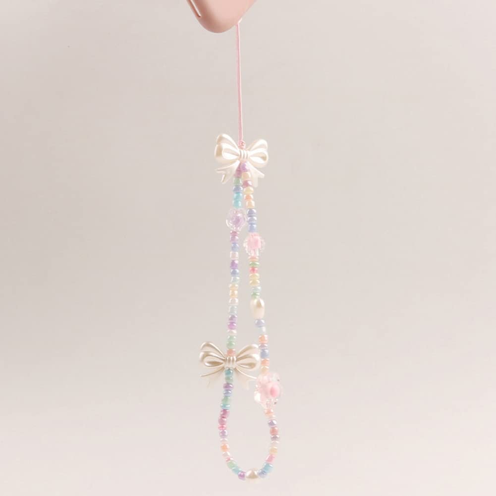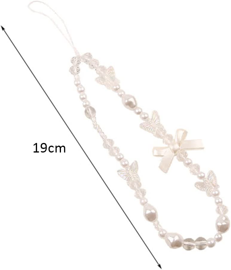 oAutoSjy Beaded Phone Charm Strap Mobile Phone Lanyard Wrist Strap Bow White Pearl Butterfly Beads Phone Chain Cellphone Strap Hanging Cord Phone Anti-lost Chain Cell Phone Accessories for Women Girls