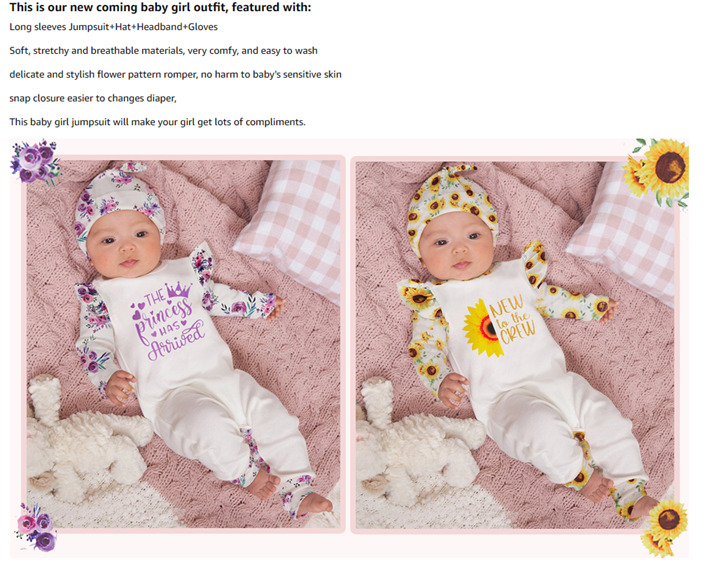 • Brand New baby newborn girls princess jumpsuit and 1 pairs of scratch-prevention mittens, Matching lovely baby bow headband and hat tcomfortably fit round your little darling's head, make your little girl more attractive and cute,quality is the first thing we can make sure.