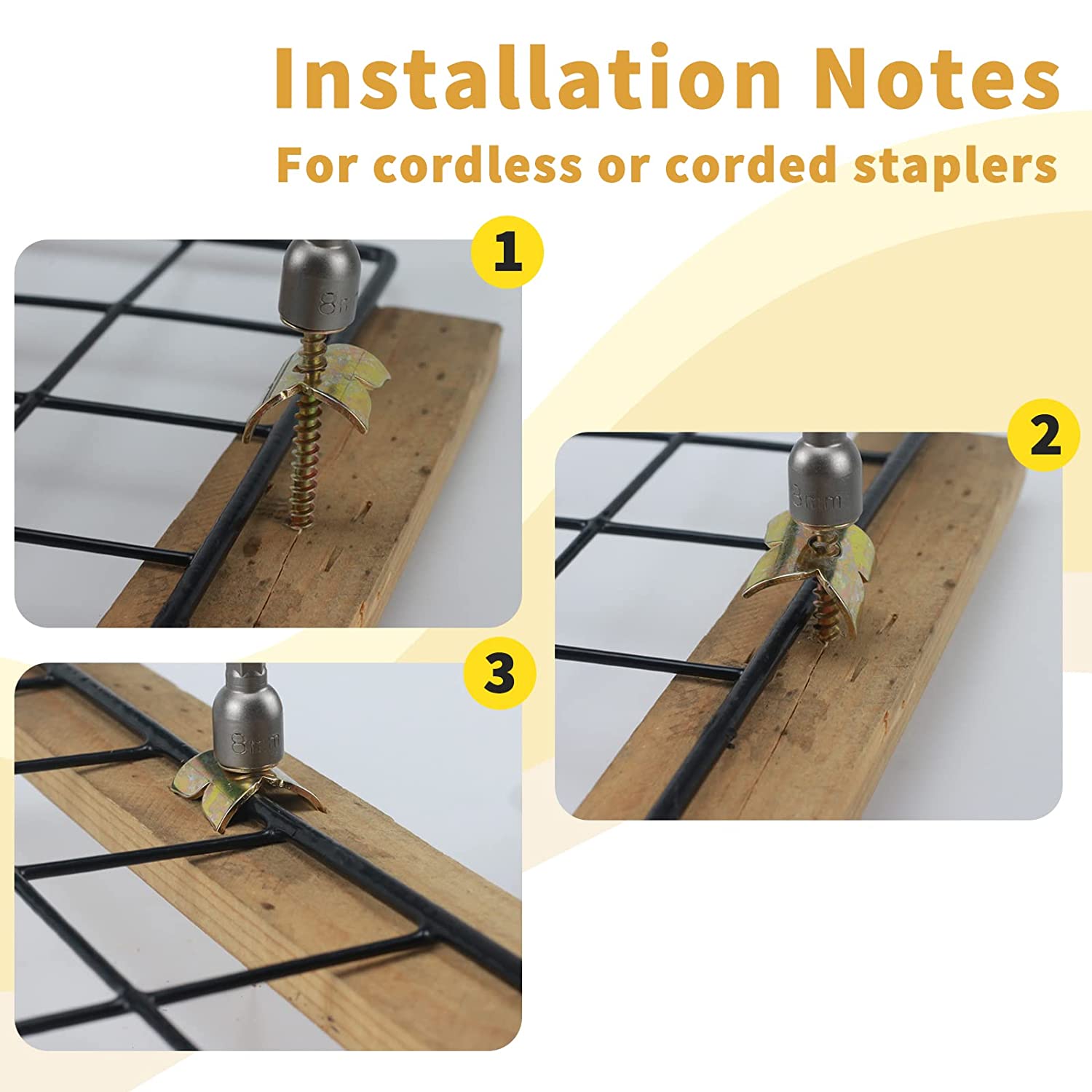 USE OF FENCE NAILS: You only need to use a wireless or wired stapler to pass the screws through the iron sheets and nail them to the stakes. It can fix multiple iron wires for you at the same time without shaking. The excellent design of the fence nails allows you to easily replace the nails where maintenance is required.