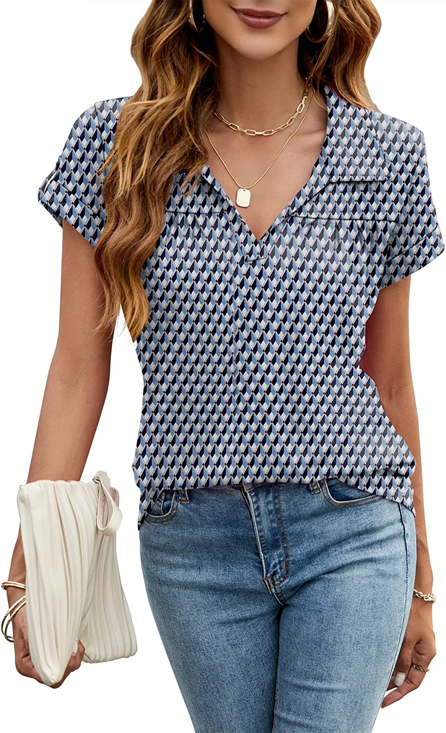 Features: Casual and elegan. Super soft, breathable and comfortable to Daily wear. collared v-neck shirts for women, short rolled sleeve t shirt for women, solid color and summer v neck shirts, fitted women pullover tunic top and blouses