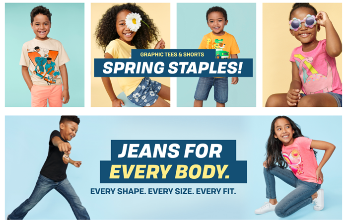 The Children’s Place offers a huge selection of kid's clothing! Shop us for jeans, shorts, leggings, chinos, polo shirts, dresses, uniforms, pajamas, and accessories. Made with premium quality materials at a great value. Kids clothing made simple.