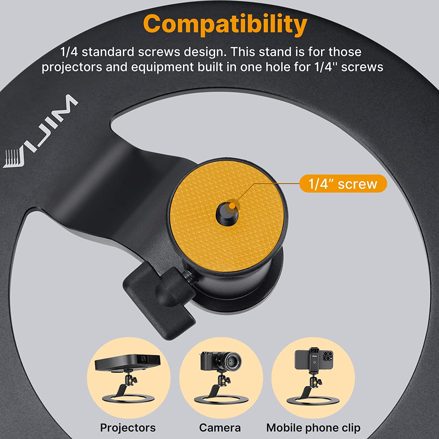 • Projector stand comes with a high-quality ball head, 360 Degrees Rotation, you can cover every angle you need. and Stable and Non-slip, the base has a non-slip silicone pad, Protect your desktop.