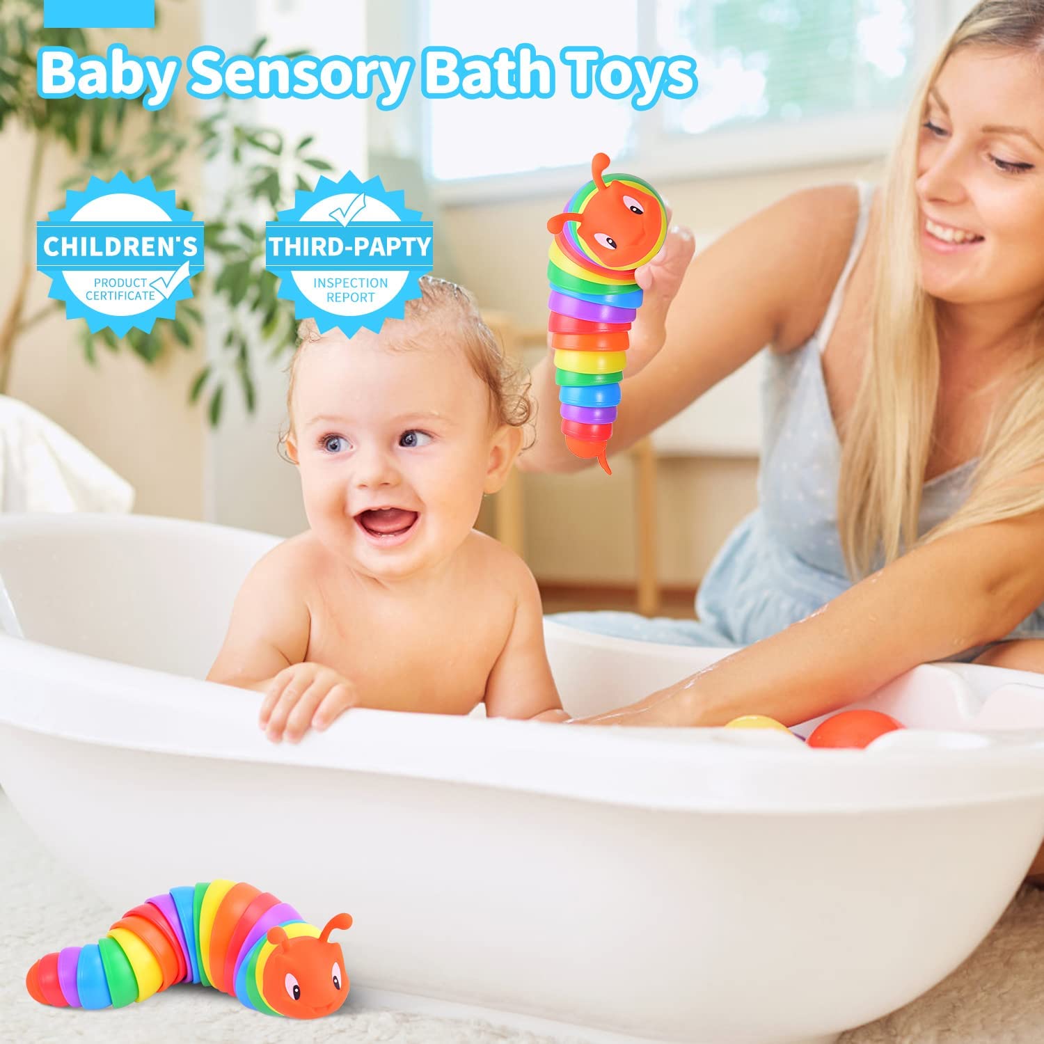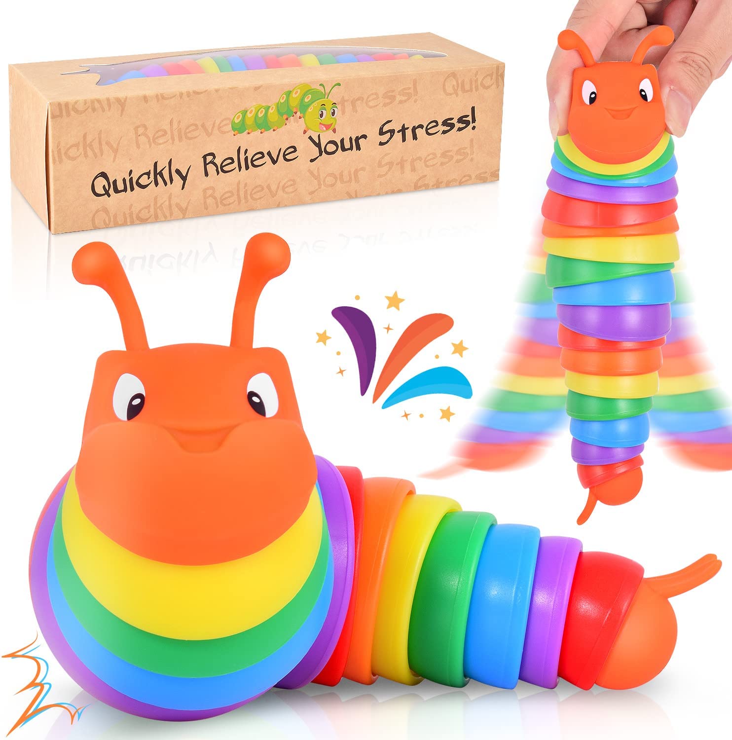 Fidget Slug Toy, Autism Sensory Toys for Autistic Children 3-12 Years Old Kids Toddler, 3D Printed Rainbow Cute Worm Fidgit with Anxiety Relief Therapy, Finger Bug Gift for Girls Boys Birthday