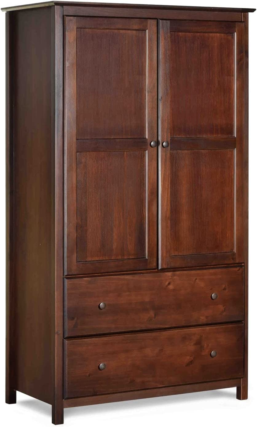 Grain Wood Furniture Shaker 2-Door Wardrobe, Walnut