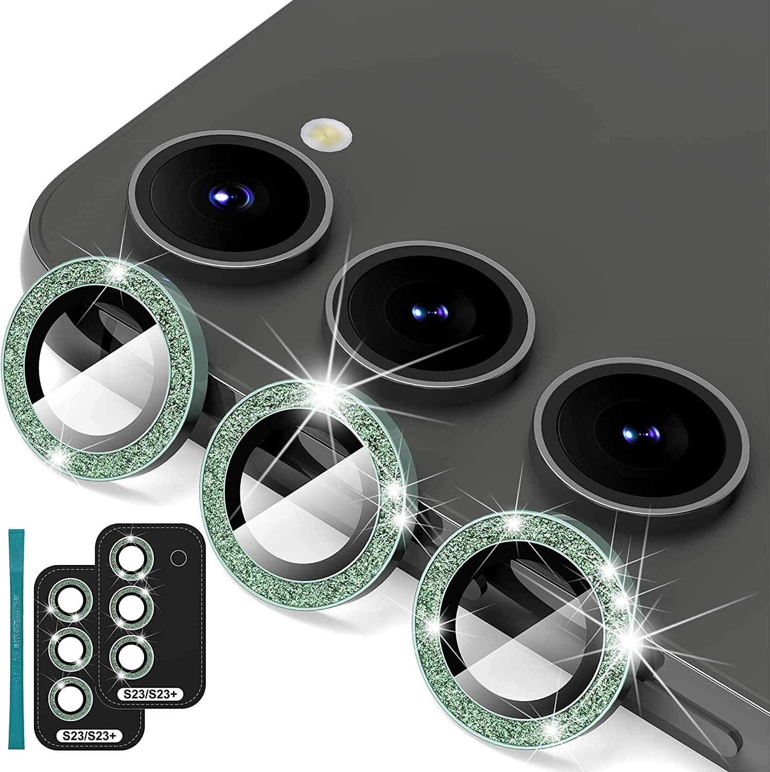Suoman [3+3 PCS] for Samsung Galaxy S23/ S23 Plus Camera Lens Protector, Premium Tempered Glass Glitter Camera Lens Protector for Samsung Galaxy S23/ S23+ [Glitter Diamonds] - Bling Green