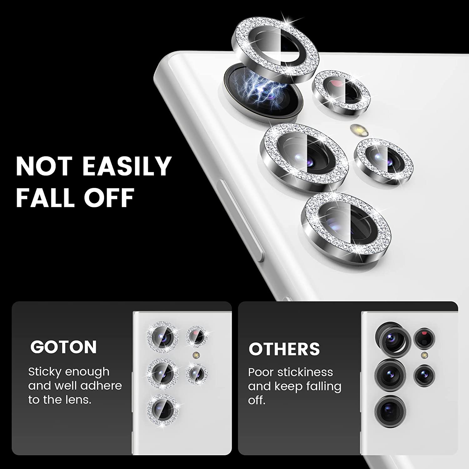 Goton for Samsung Galaxy S23 Ultra Camera Lens Protector, HD Glass Metal Lens Screen Protector Cover For Galaxy S23 Ultra 5G Accessories [Removal tool][Case Friendly] Glitter Silver