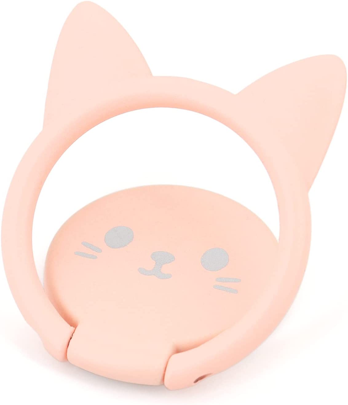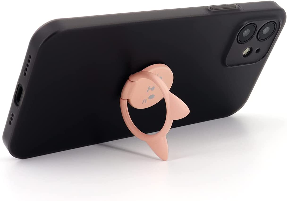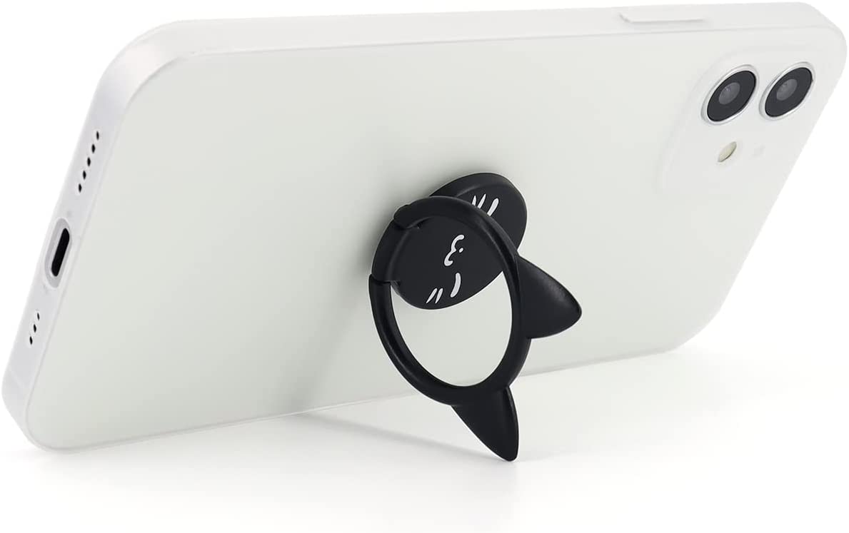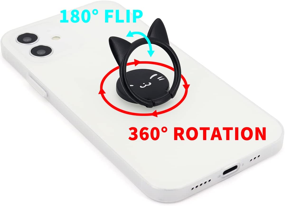 LaMignonne Cat Cell Phone Ring Holder Ultra-Slim Metal Finger Grip 360° Rotation & 180° Flip Universal Phone Kickstand for Magnetic Car Mount Compatible with All Smartphones (Black-Smile)