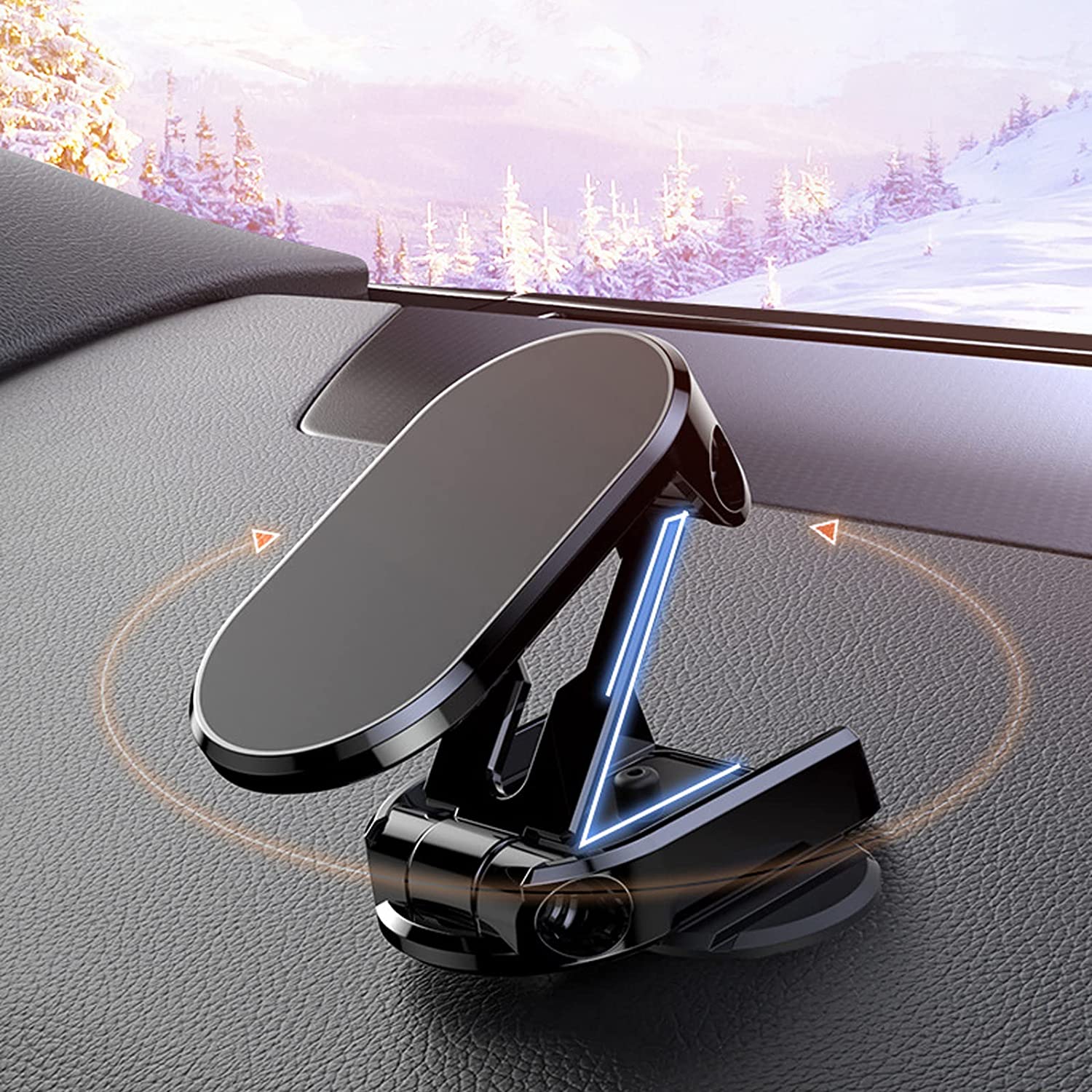 FEELNOW 2023 New Alloy Folding Magnetic Car Phone Holder, Magnetic 360° Car Phone Holder Stand Dashboard Folding Bracket Universal (Black)